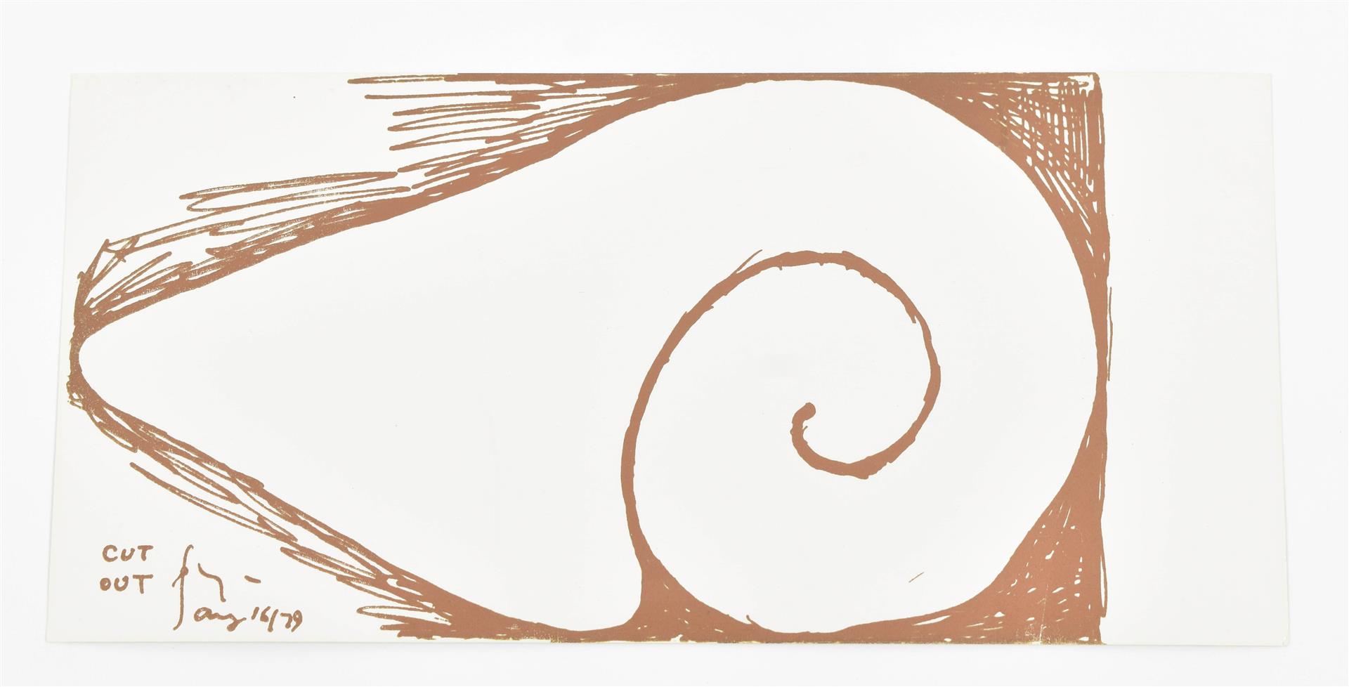 Flanagan produced a cut-out card featuring a drawing of a Curl Snoot sculpture for his exhibition at Art & Project in Amsterdam in 1979. The card could be cut-out along the perforated lines, to be shaped into a 3D sculpture.