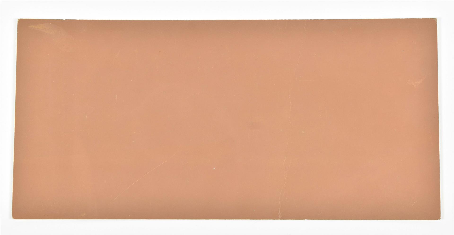 Printed golden brown on white stock recto, all brown verso, 21 x 10 cm. The title, date (Aug 16 1979) and Flanagan's signature are printed below the drawing. In very good condition.