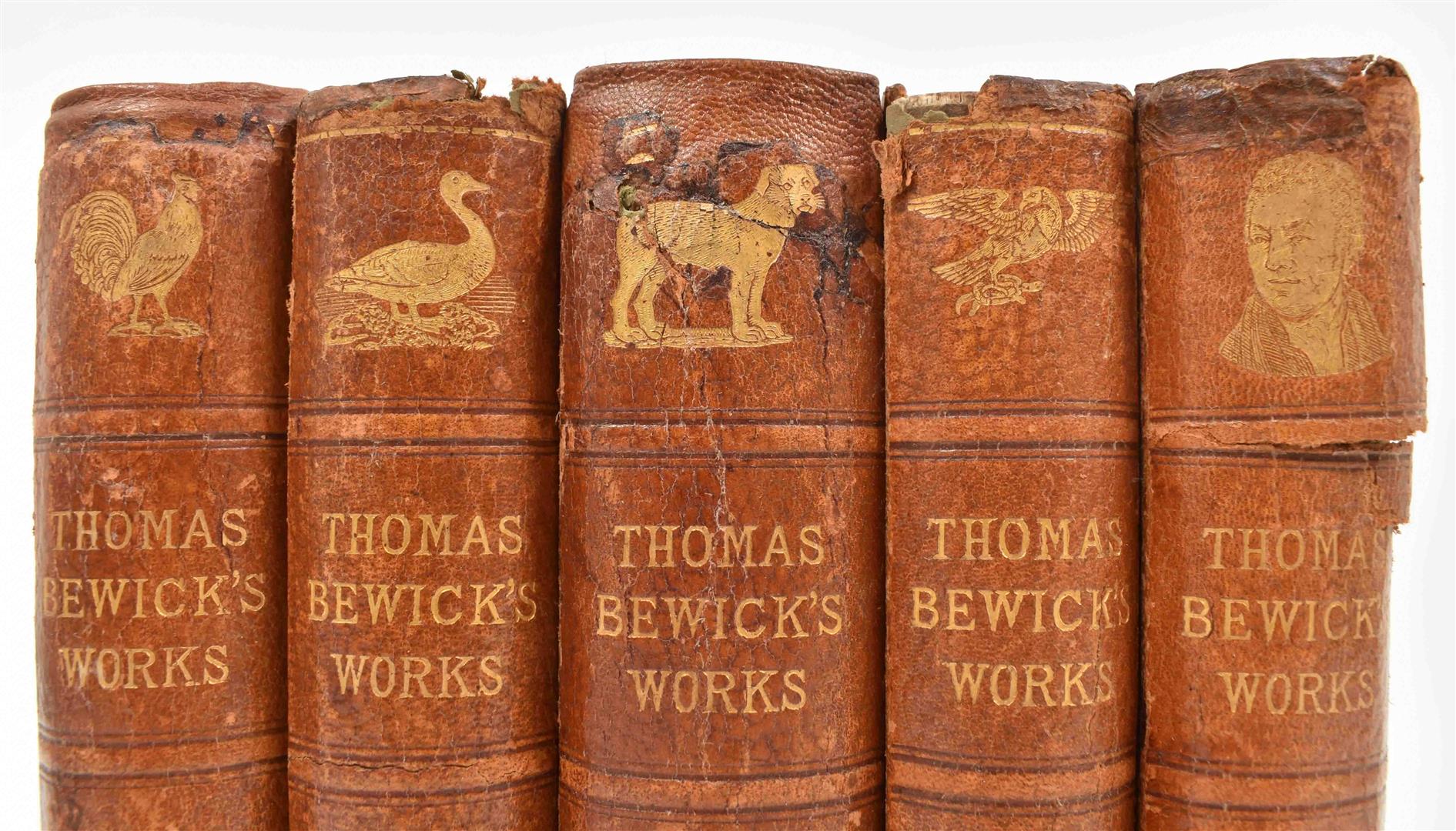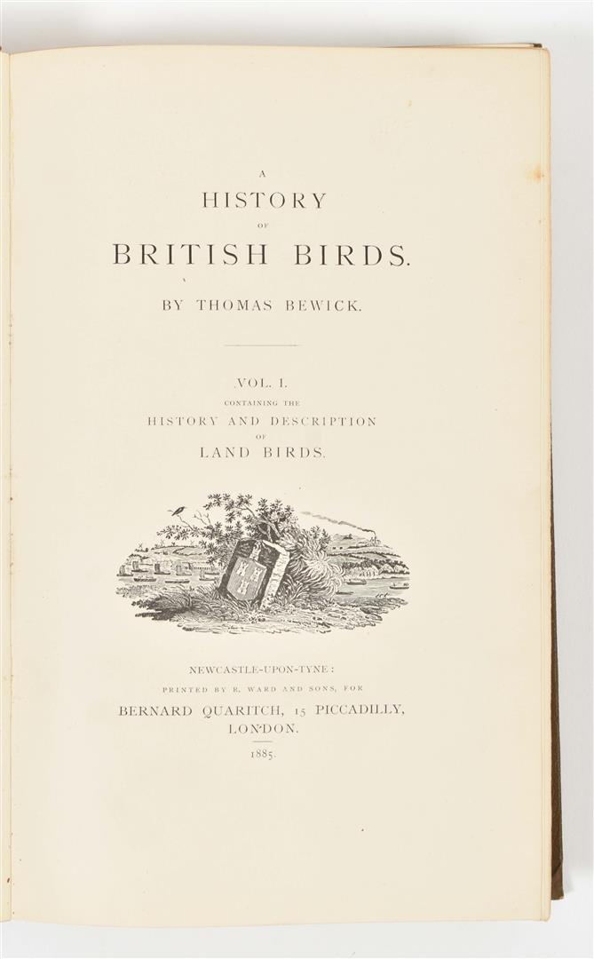 London, Quaritch, 1885-87. 5 vols. Special memorial ed. of 750 copies, comprising of A History of British Birds (2 vols.), (3) Quadrupeds, (4) Aesop's Fables and (5) A Memoir, num. sm. b/w engr. throughout. Unif. orig. half morocco, gilt title and dec. on spine, t.e.g. Large 8vo.