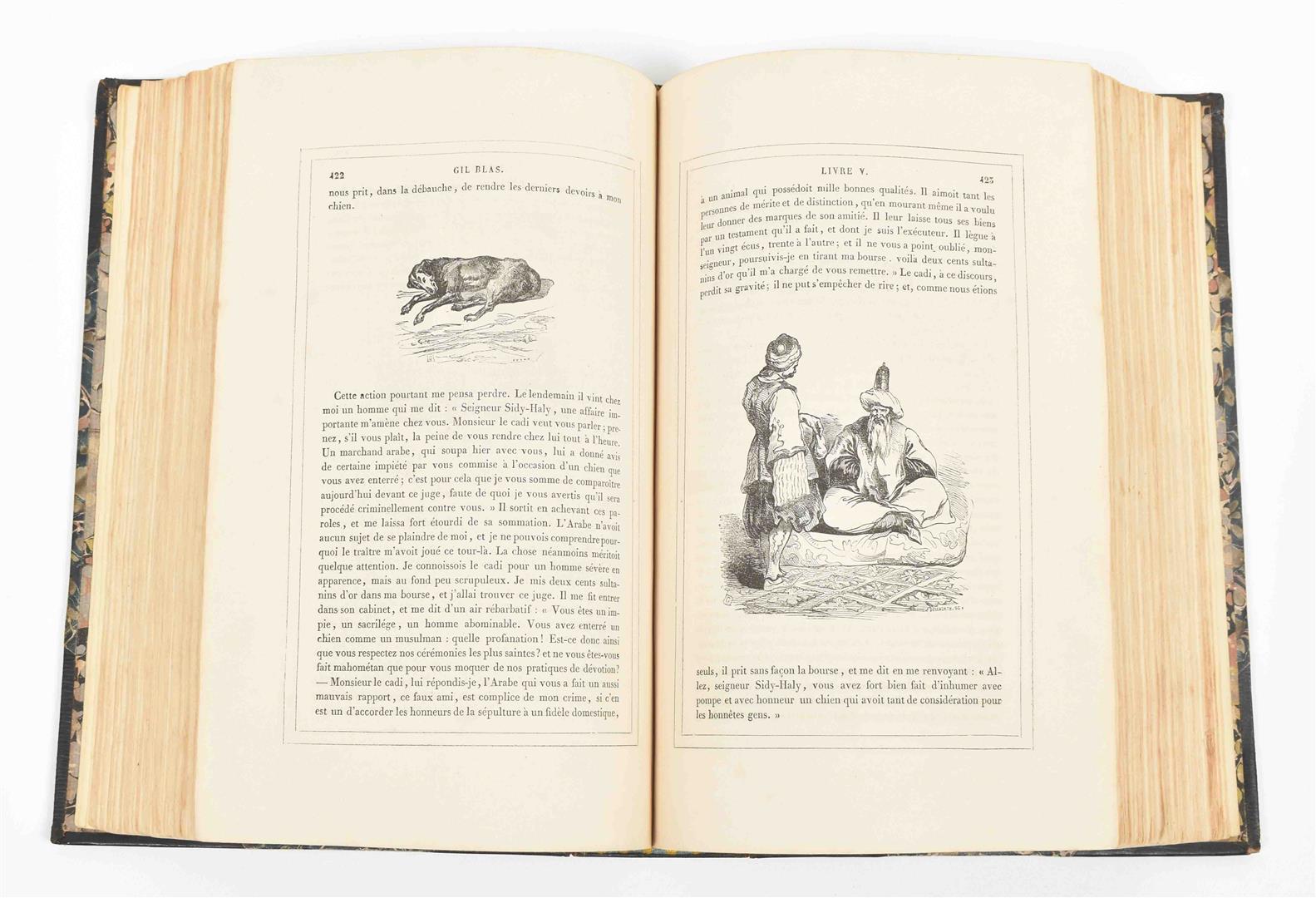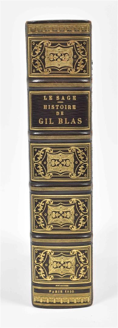 Vignettes par Jean Gigoux. Paris, Paulin, 1835. 972 p. Richly ill. w. num. woodcuts by Gigoux. Finely bound in half leather w. marbled paper boards, pastedowns and flylvs., gilt title and dec. on spine. Large 8vo.