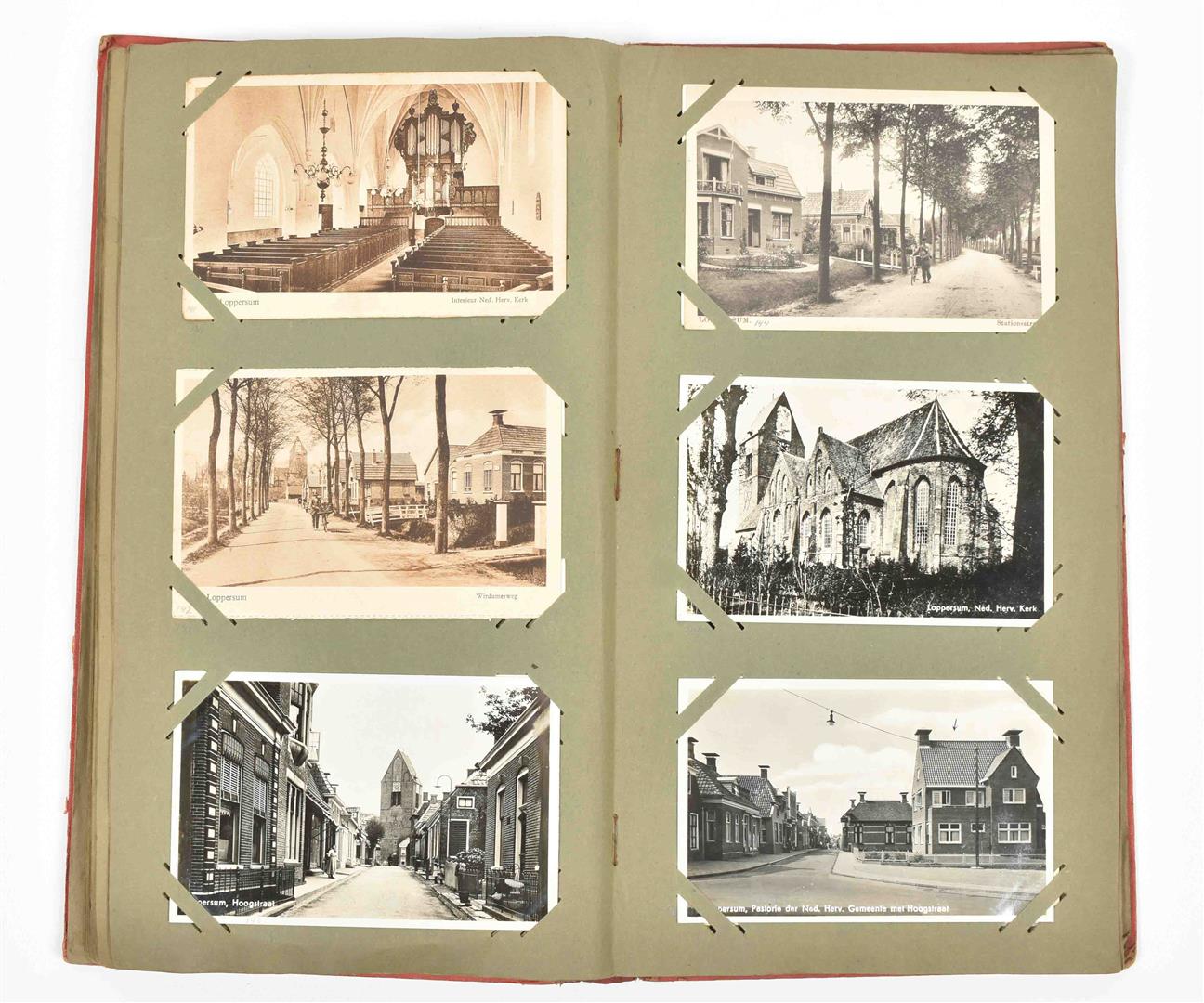 Tipped-in to 1 mostly filled (worn) album. Incl. a.o.: several photocards, some street views w. people, many of churches in the city and the province.