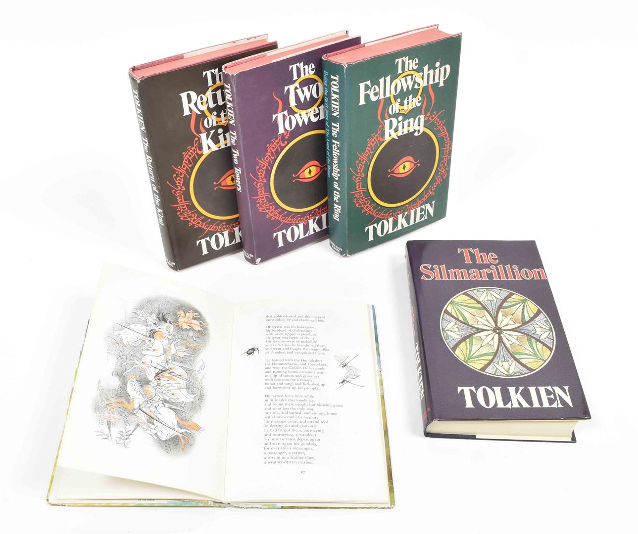 George Allen & Unwin, first impr., first ed., 1977. Cloth with dust j. With: (2) Lord of the Rings vol. I-III. Second edition, 9th impression, 1974. Cloth with dust-j. (3) The Adventures of Tom Bombadil. Fifth impr., 1971. Cloth with dust-j.