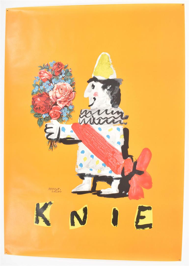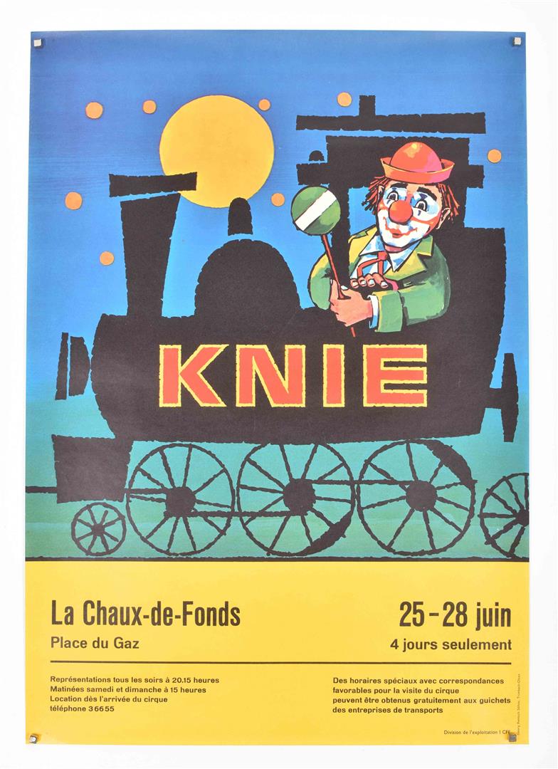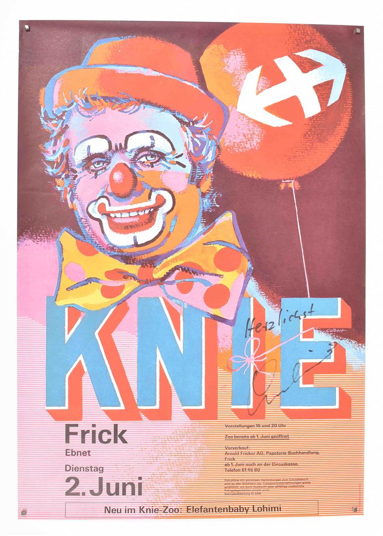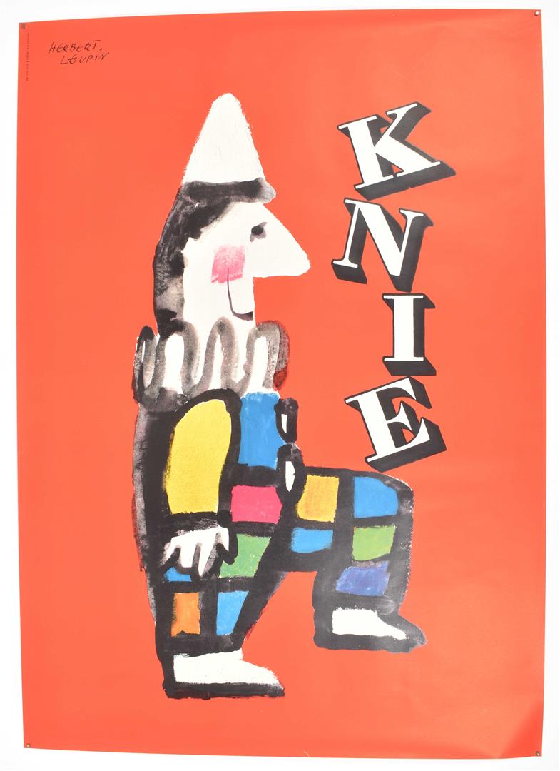 'Clown in orange', after the 1959 design (40 Anni Circo Nazionale Svizzero), Switzerland, n.d. 90 x 128 cm. (2) 'Clown in red', 90 x 128 cm. (3) Georg Rentsch Söhne. Knie. La Chaux-de-Fonds. 50 x 35 cm. Pinholes. -and 1 other by Werner Colbert (signed).