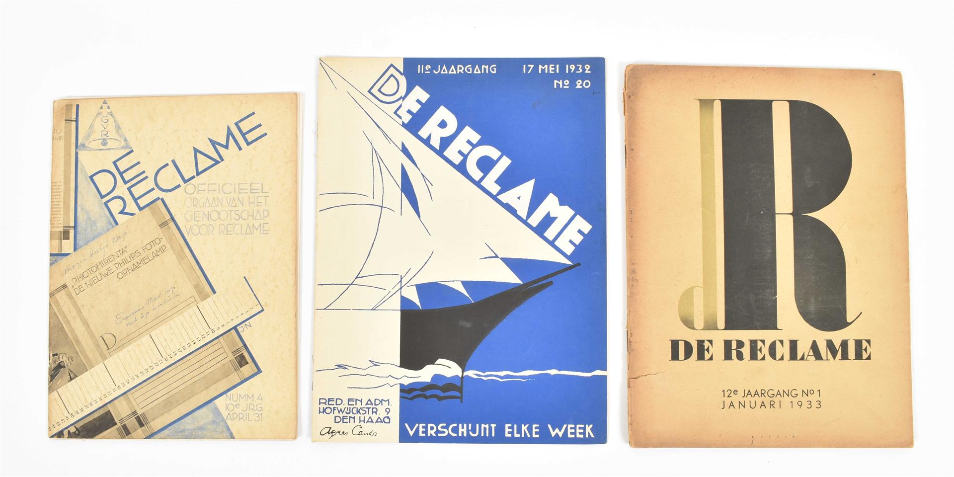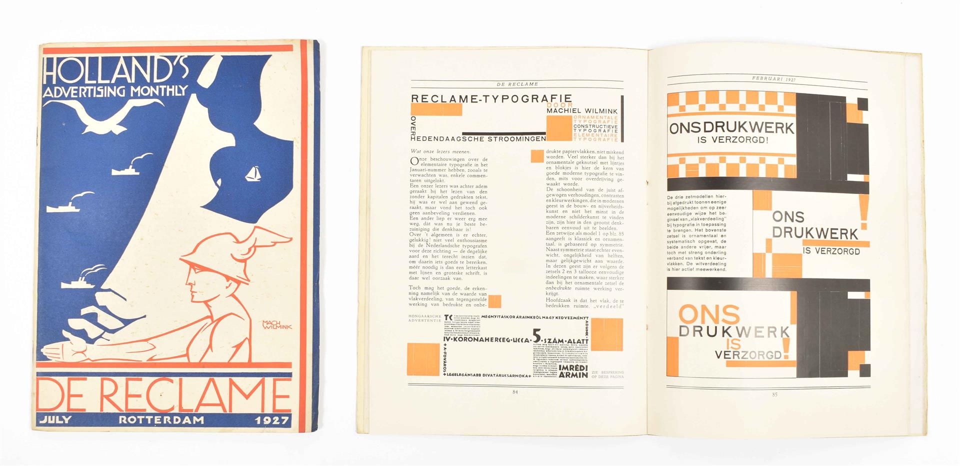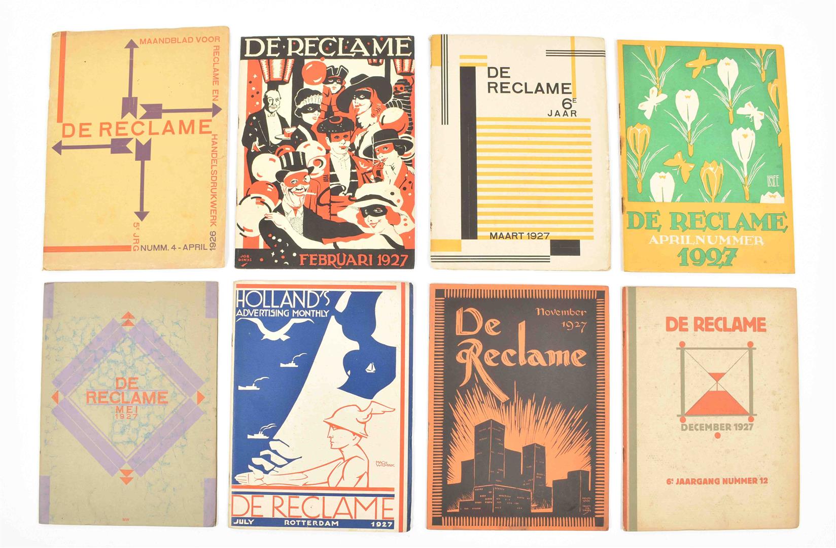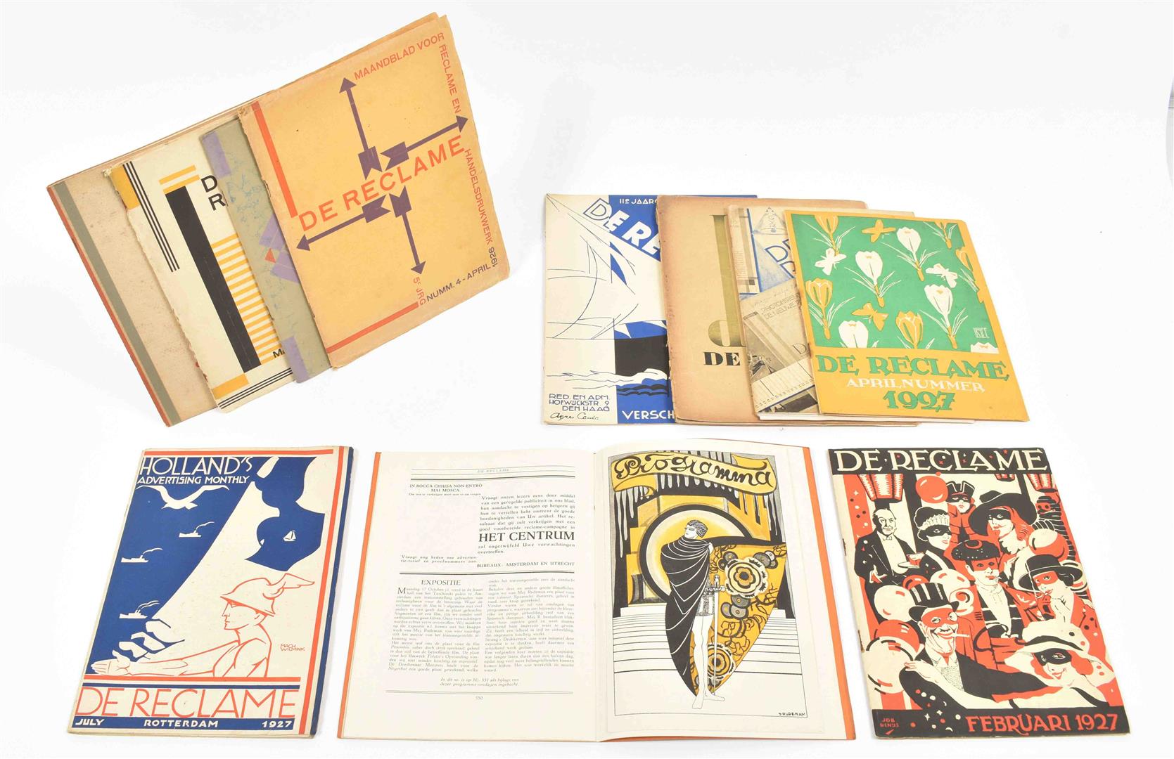 Maandblad voor Reclame en Drukwerk. (1) 1926, no. 4. (2) 1927, no. 2-5, 7, 11 and 12. Huszar chromos in no. 2 heavily dam. as usual, Copier brochure in no. 5. (3) 1931, no. 4, incl. 5 brochures/ inlays. (4) 1932, no. 20, incl. 2 brochures by v. Stein. (5) 1933, no. 1, incl. 5 brochures/ flyers.