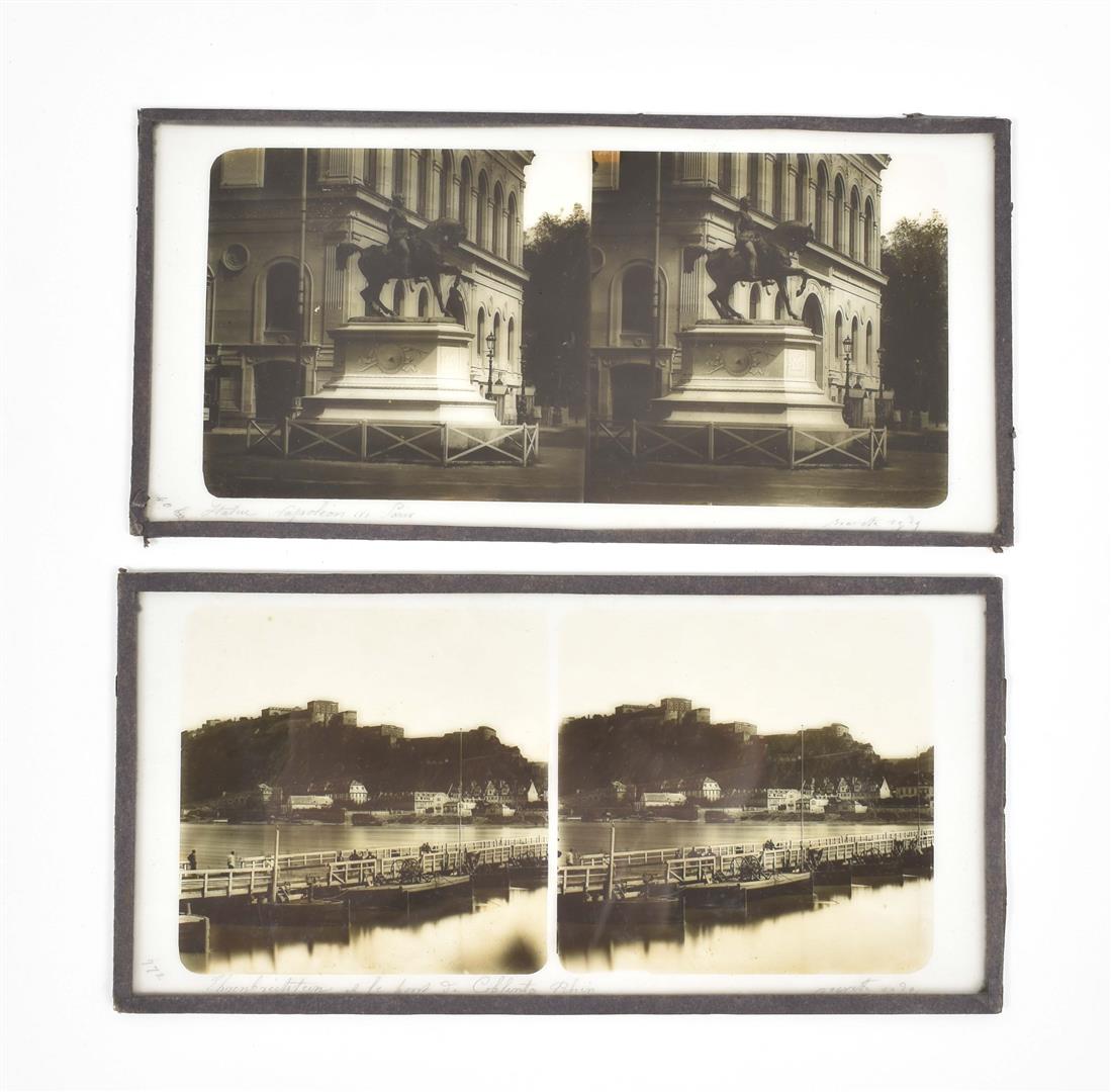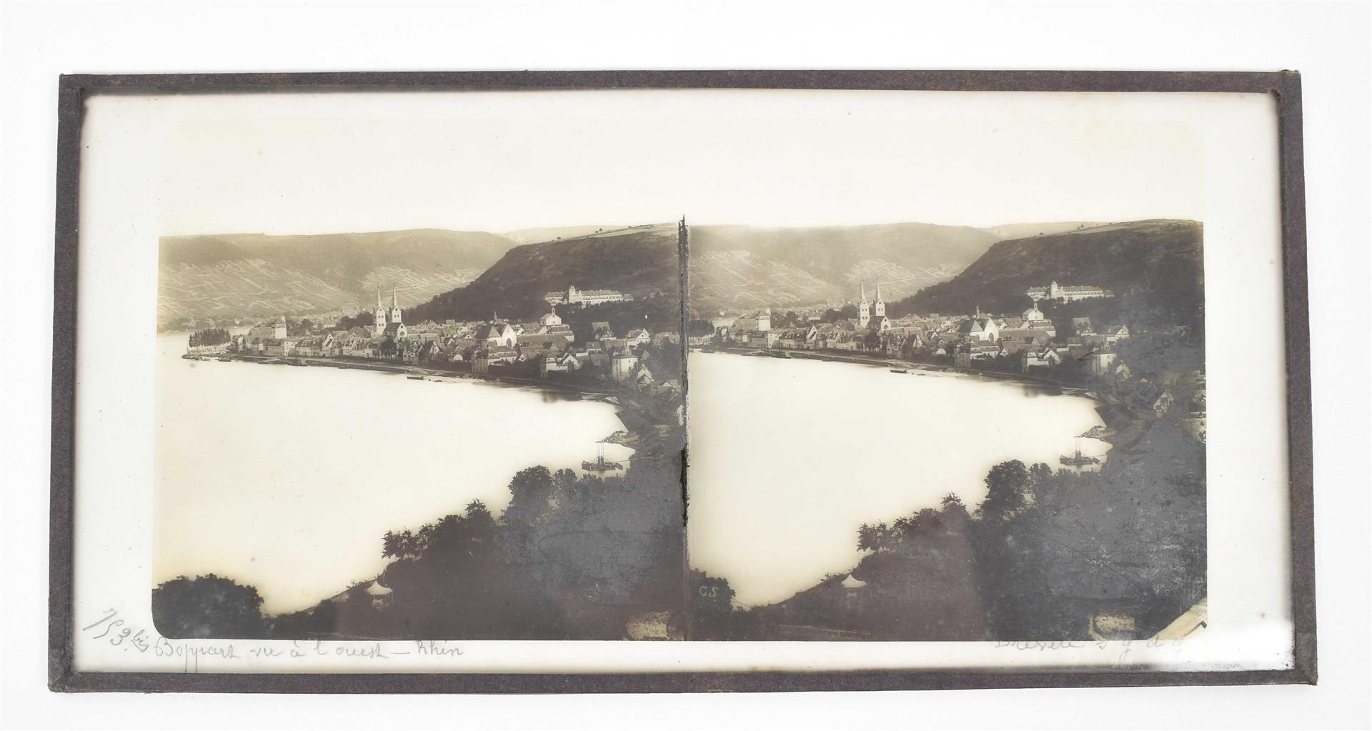 Var. images of a.o. Java, France, Switzerland, villages and sites along the Rhine River and Germany. Late 18th to early 19th cent. Some stereograms mounted between glass. Box 41 x 12 x 19 cm.