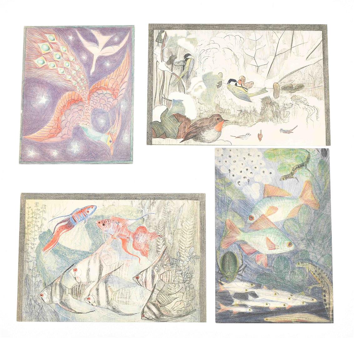 Ca. 1930s. Var. sizes, all col. Depictions of a.o. birds, flowers and fish.