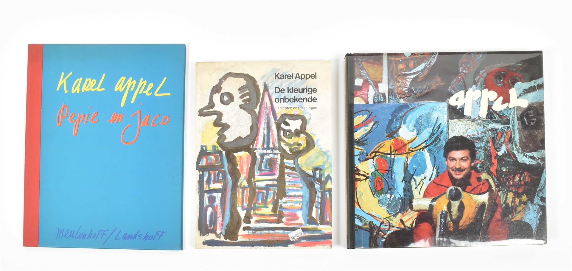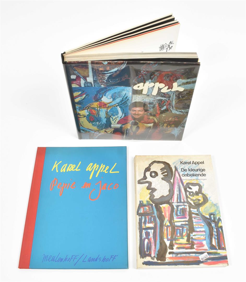 Amst., A.J.G. Strengholt, 1962. 178 p. Cloth-backed ill. boards w. transparent dust-j. (2) Karel Appel. Pepie en Jaco. N.pl., Meulenhoff/ Landshoff, 1981. 1 of 1000 copies (unnumb.). Hc. (3) Karel Appel. De kleurige onbekende. Gedichten en tekeningen. Amst., Bezige Bij, 1986. 296 p. Ill. sc. -and 9 others.