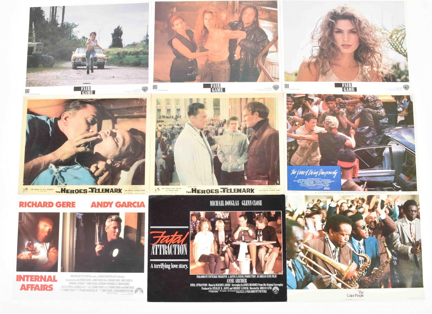 Var. countries, var. sizes (mostly ca. 20 x 25 cm). Partly warped, pinholes, occas. other defects. Showing a.o. Jack Nicholson, Warren Beauty, Diane Keaton (Reds), Cindy Crawford, William Baldwin (Fair Game), Jennifer Beals (Flashdance), Mia Farrow (Hurricane) etc.