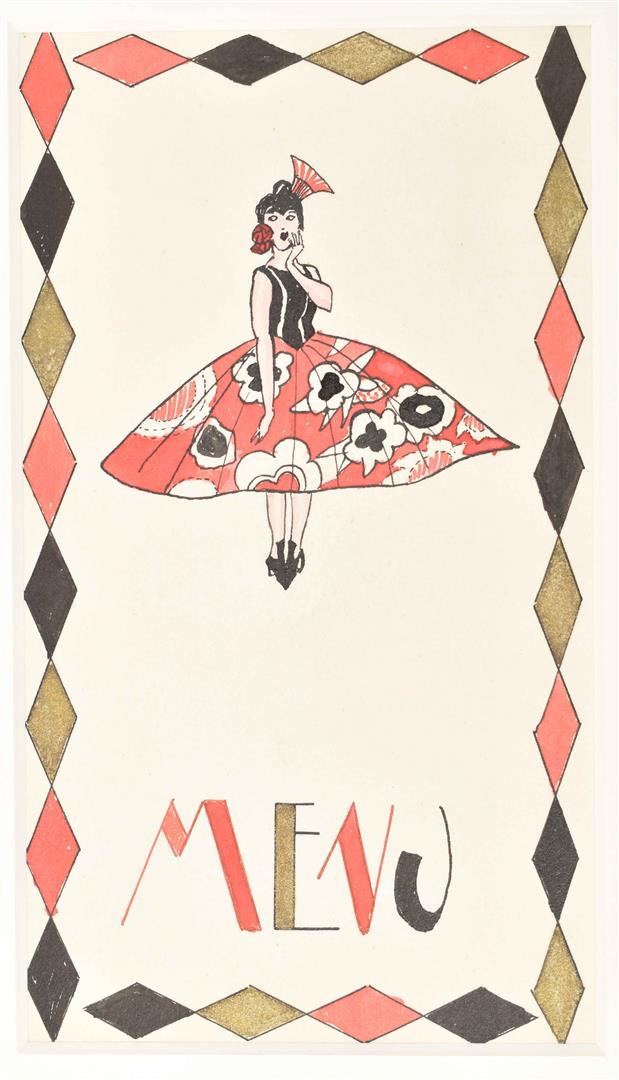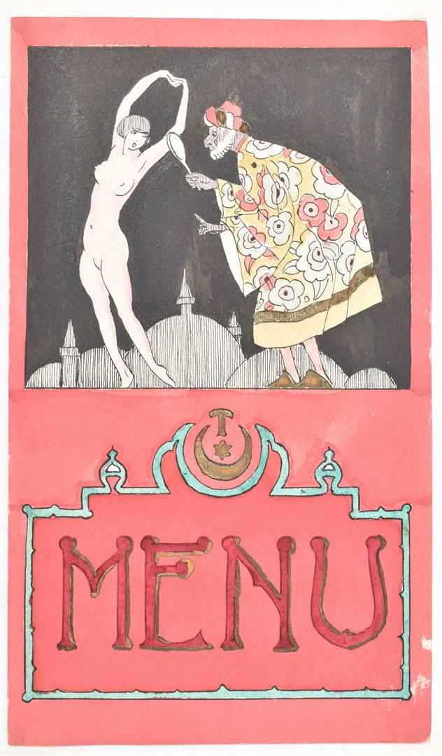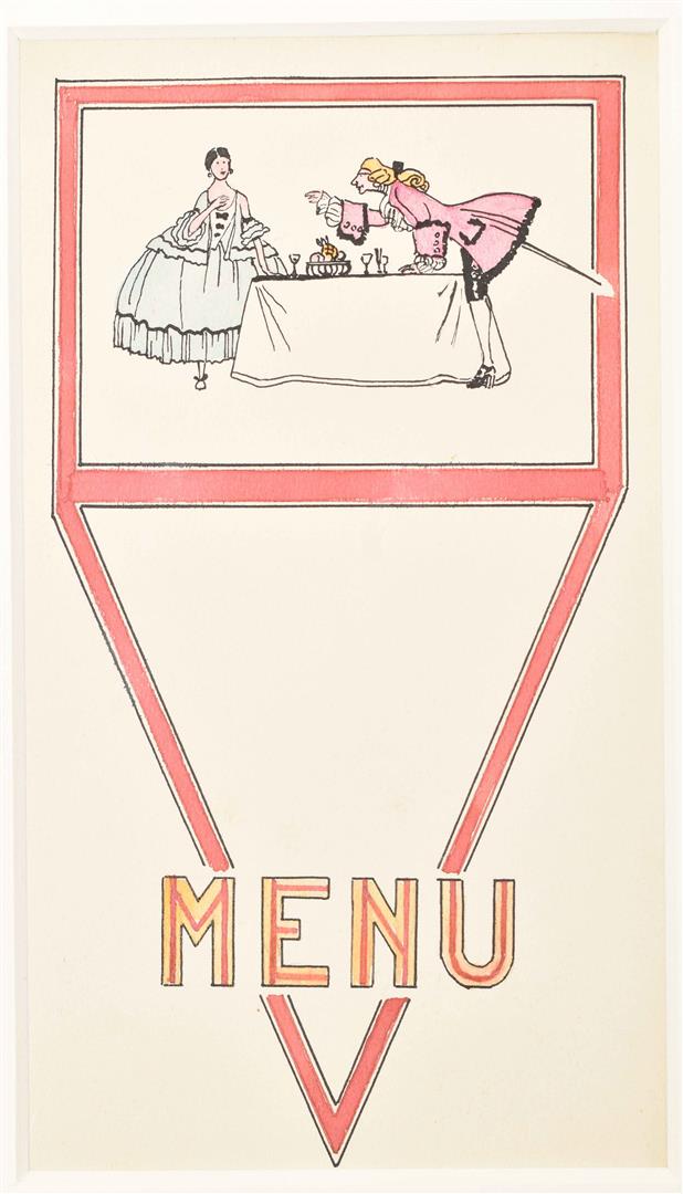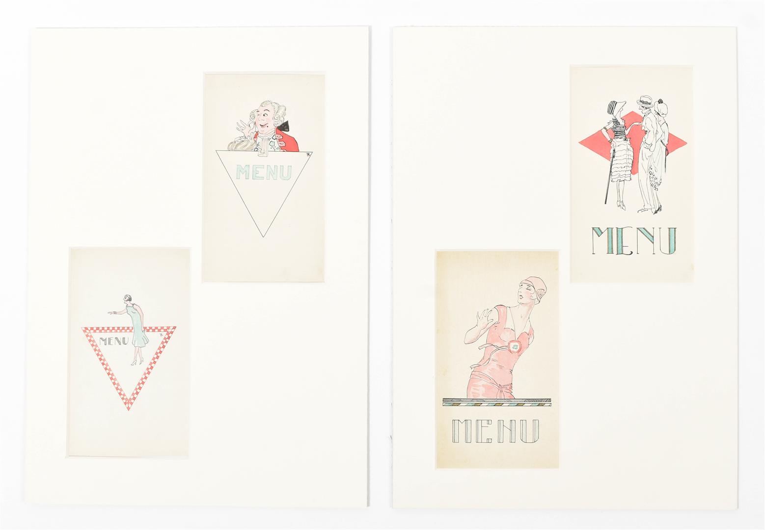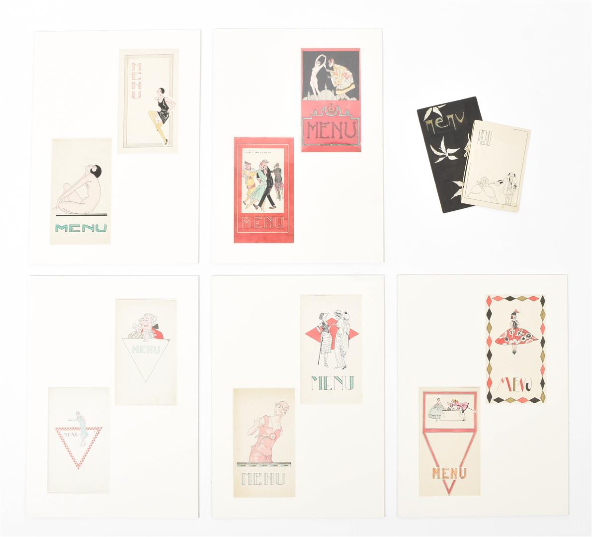 Incl. a few erotic designs. -and 2 other orig. designs for menu cards. (total 12)