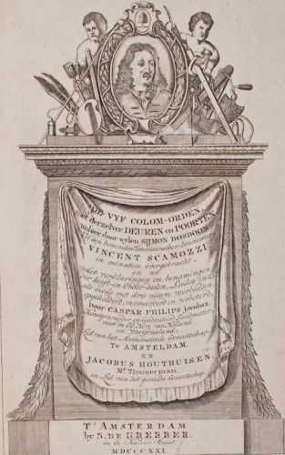 -uit den beroemden Venetiaanschen-bouwmeester Vincent Scamozzi. opgehelderd, vermeerderd en verbeterd door Caspar Philips jacobsz. Amsteldam, Jacobus Houthuisen, Meester Timmerman. S. de Grebber, 1821.