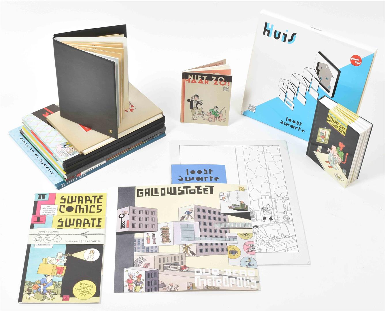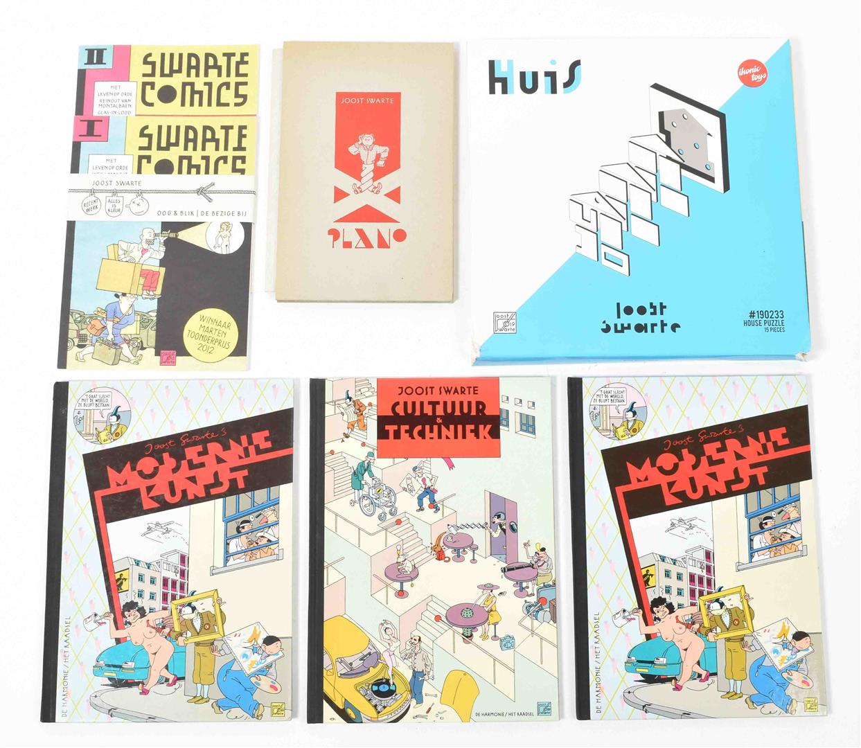 Eerste-Vierde Schrift. (2x eerste-derde) Rotterdamse Kunststichting, 1977. -and 2 other, later "Kuifje in Rotterdam" publ. (2) Ernst Pommerel. Kuifje en China. Achtergronden van het Beeldverhaal, 1977. (3) Wim Noordhoek. Er is geen eind aan Kuifje. -and 2 other publ. from the Achtergronden series. (4) Niet zo, maar zo! Amst., Harmonie/ Raadsel, 1985. -and 13 other publ. by/ about Swarte.