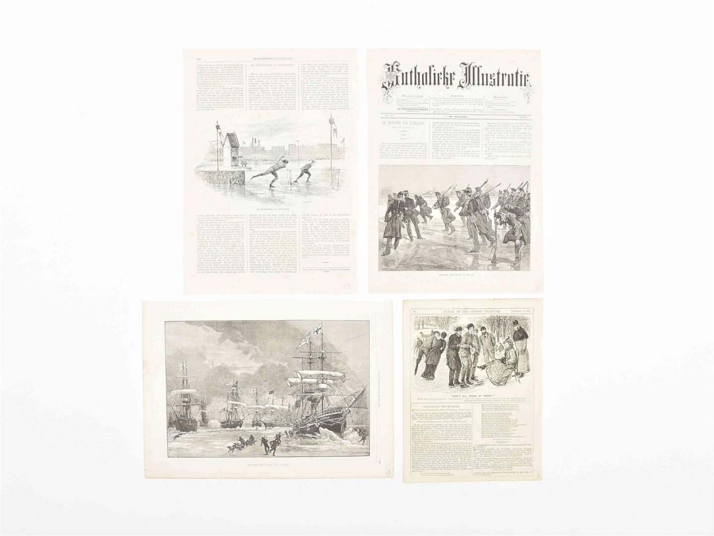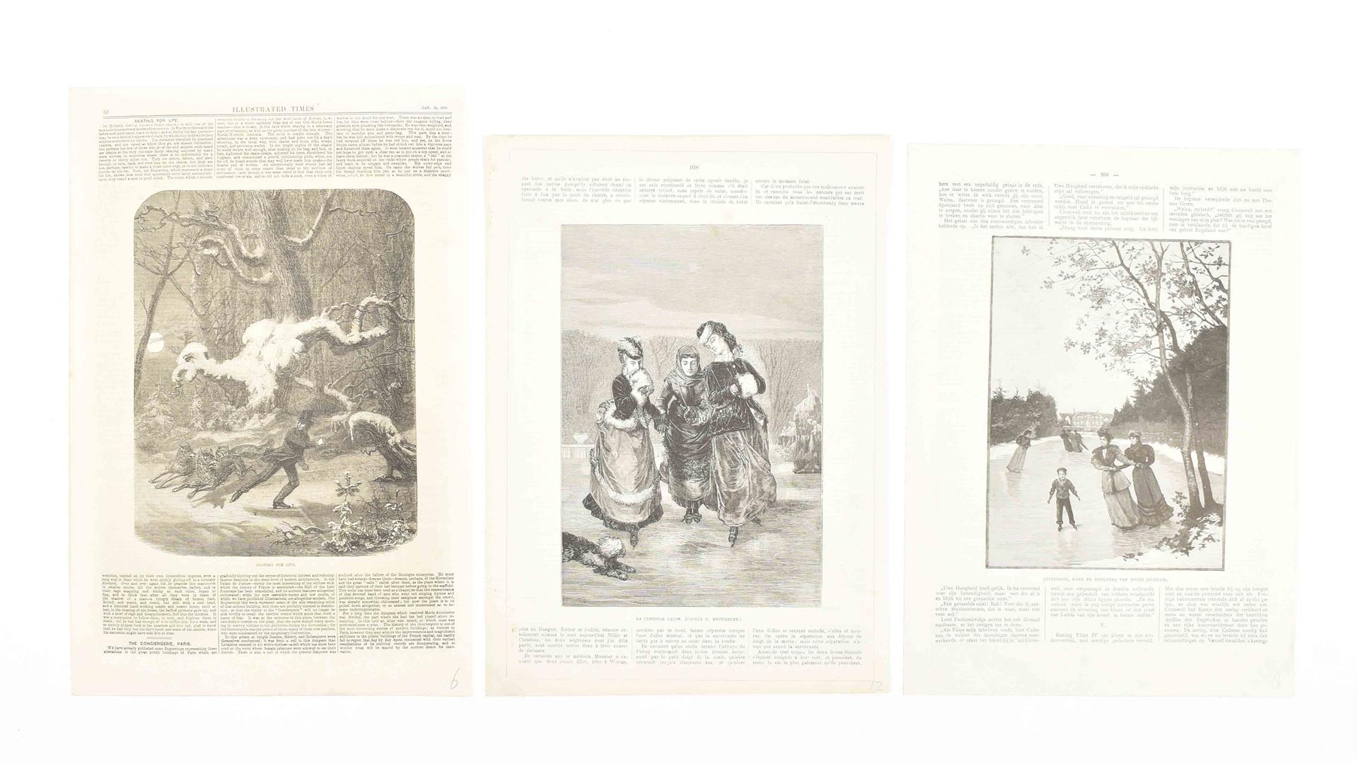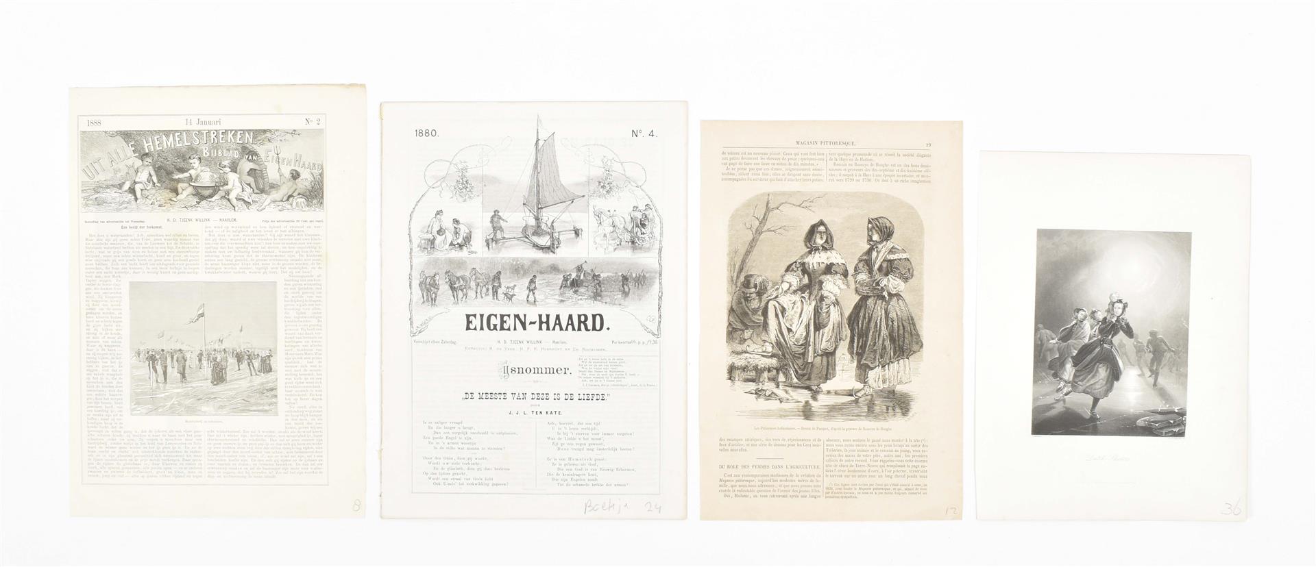 17th-19th cent., var. sizes, kept in modern portfolio. (1) "Gestalte van de voorgaande Huizing, na het blussen van den brandt". Handcol. engr. by J. Mulder after J. van der Heyden, 33 x 25 cm, w. engr. caption in Dutch and French below the image and "17de figuur pa. 34" above the image (cut sl. short), from Van der Heyden's Brandspuitenboek, ca. 1700. Sl. creased and trimmed inside the plate mark in right margin. (2) "Winter gezigtm buyten de Utrechtse Poort". Engr., 15.5 x 20 cm, w. captions in French and Dutch below the image, ca. 1700. (3) "Winter". Engr., 24 x 17 cm, titled, "Ïsack Houwens excudit" and numb. "4" in the plate, under passepartout. -and 22 others.