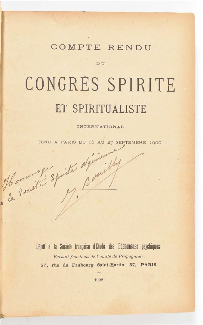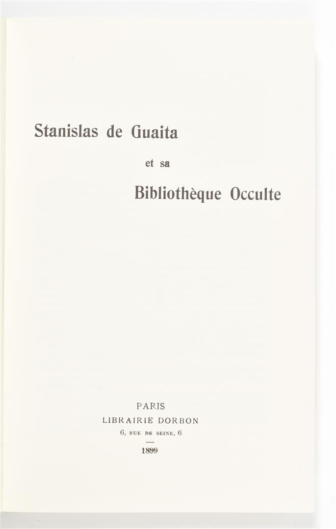 Préface de Ad. Franck. Paris, Dorbon-Ainé, 1929. Half leather. (2) Bouilly, M., ed. Compte rendu du Congres Spirite et Spiritualiste, Paris septembre 1900. Soc. Fr. des Phénomènes psychiques, 1902. Dedication by Bouilly on title page. Hcalf. Upper inner hinge loose. Rare. (3) Stanislas de Guaita et sa Bibliothèqie Occulte. Alencon, 1980. Fascimile reprint of the ed. 1899. Sc. -and 3 more.