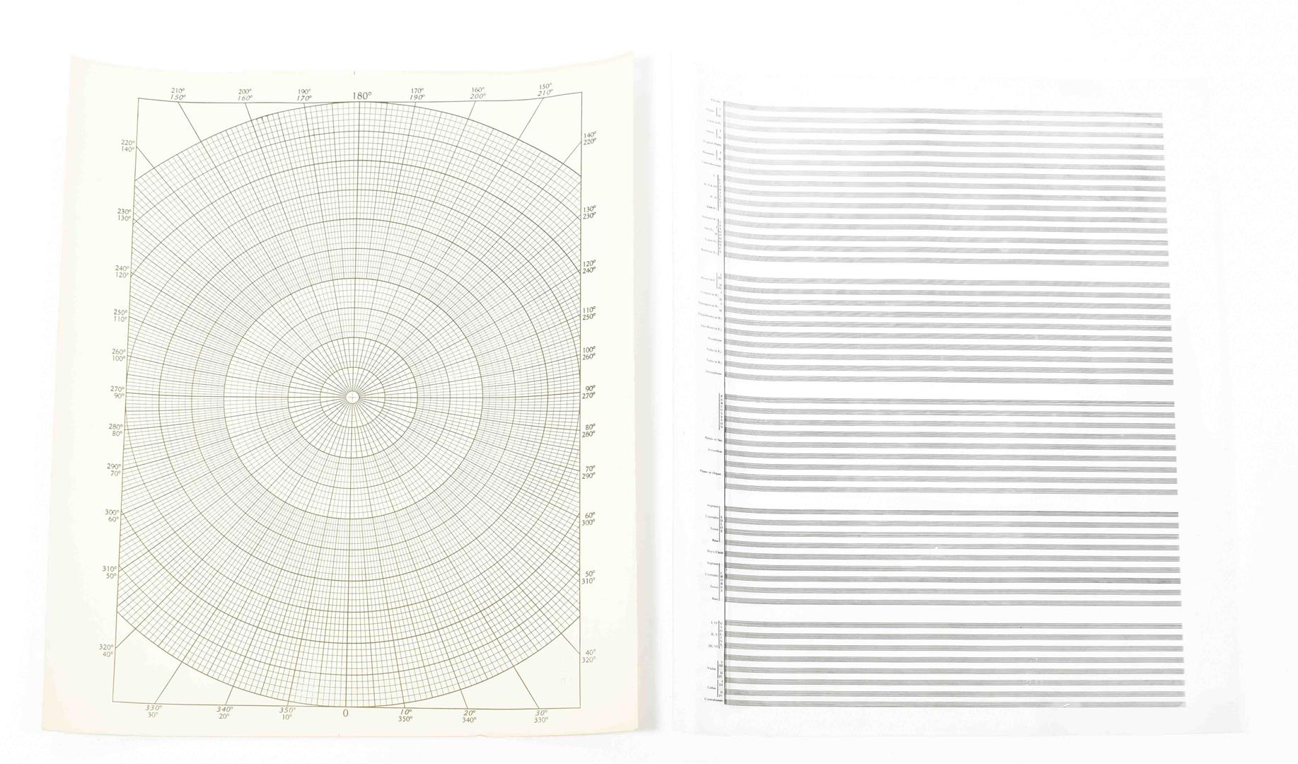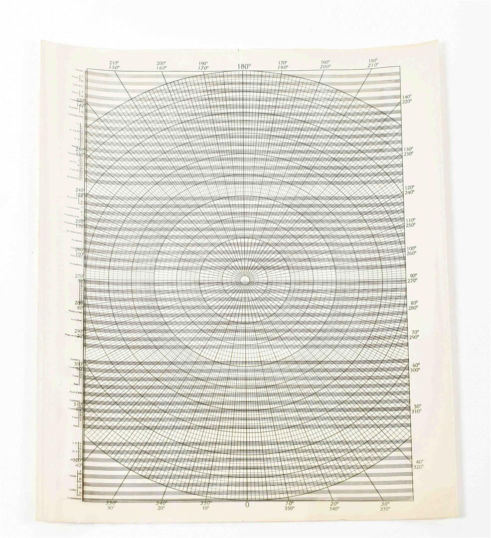 Editor's text: when the acetate is placed in any position over this diagram and when the resulting notation is performed by an orchestra large enough to play most though not necessarily all the part and when everything from solos to tuttis is played as loud as the instrument is capable and when the notation is interpreted in any consistent way, you will hear Dick Higgins' Graphis #144: Wipeout. but when the acetate is placed over anything else perhaps a newspaper or a poster, a drawing or a photograph and the parts are played consistently as above in a manner appropriate to the title, you will hear Dick Higgins' Graphis #143: Softly for Orchestra.