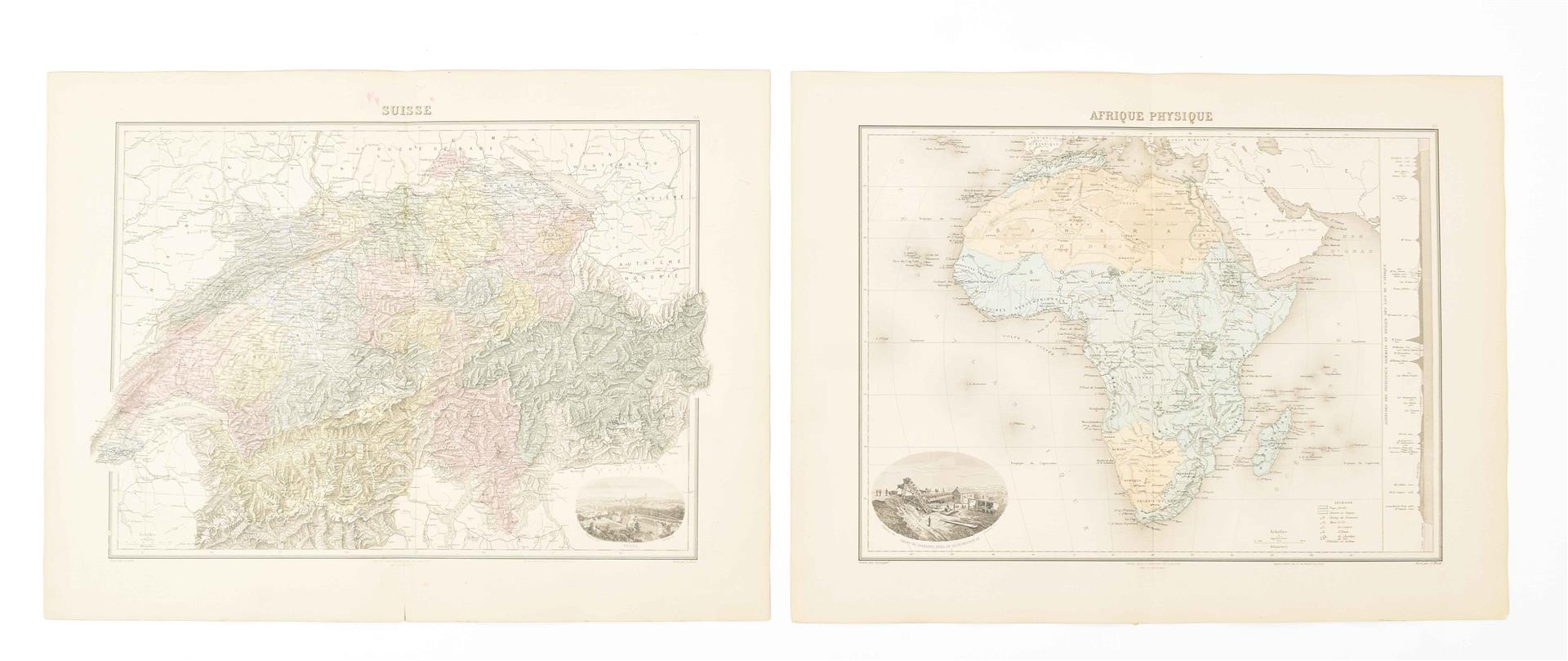1812. Gravé par Semen. Lale Scrip. Vuillemin. Paris. Fold as publ. (2) New Granada, Venezuela, Guiana; Peru. Equasor; Argentine Confederatio. All on 1 col. map. Pennsylvania, S.A. Mitchell Jr., 1860. (3) 32 maps by John Tallis & Company, London/ New York, ca. 1850. Ill. and mostly col. from var. ed. (4) 33 maps by Smith and A. Bixet. Paris, J. Mignon, 1880. All w. sm. ills. and col. maps.