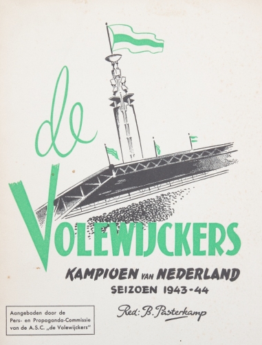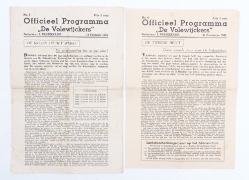 Jubilee issue De Volewijckers 1920-1935 + Jubileumnummer 1920-1945 + Season 1943/44 Speciale Kampioenseditie 1e klasse District 1 + Season 1943-44 Speciale Kampioenseditie Kampioen van Nederland + Official programme of the Champion season 1943-44 (against D.F.C.) and similar against H.B.S.