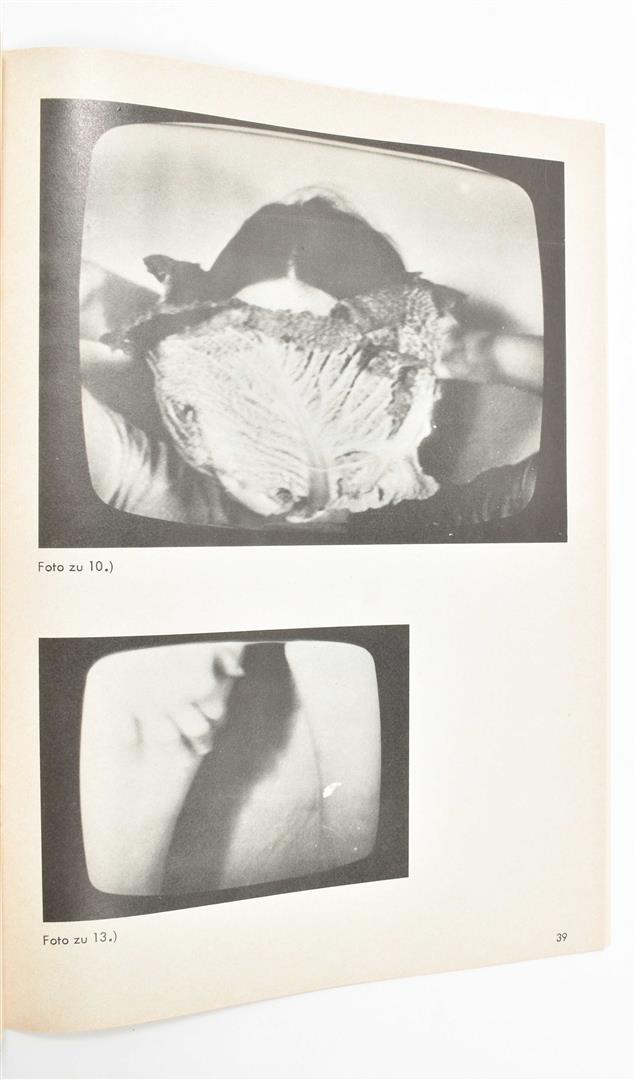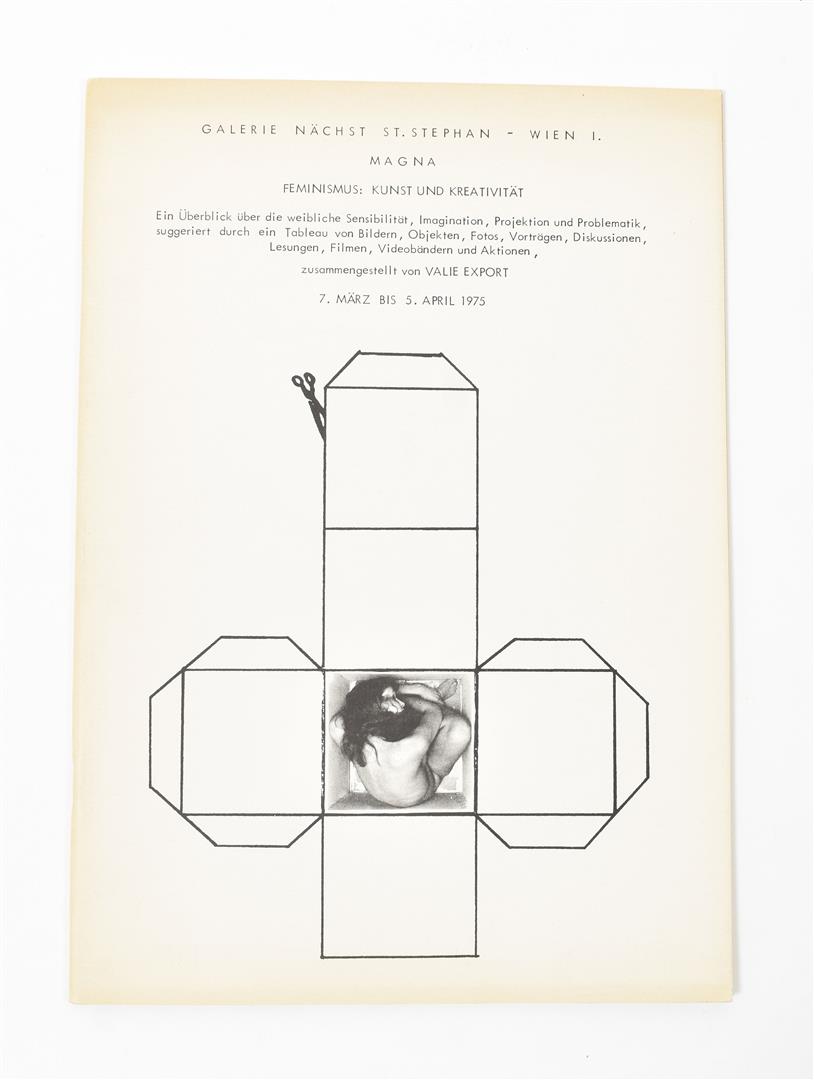 Vienna, Galerie Nächst St. Stephan, 1975. Rare first edition catalogue and symposium booklet. (1) Catalogue. Softcover, 29.7 x 21 cm, 52 pp. Ills. b/w, texts in German. Signed and dated by Valie Export, curator of the encompassing project, on the last page. The exhibition that took place at Galerie nächst St. Stephan in Vienna was intended to provide 'an overview of female sensitivity, imagination, projection, and problems, suggested by a tableau of pictures, objects, photos, lectures, discussions, readings, films, video tapes and actions.' Artists included Hilde Absalon, Renate Bertlmann, Valie Export, Birgit Jürgenssen, Maria Lassnig, Friederike Pezold, Dorothy Iannone, Rebecca Horn, Ulrike Rosenbach and Katharina Sieverding et al.