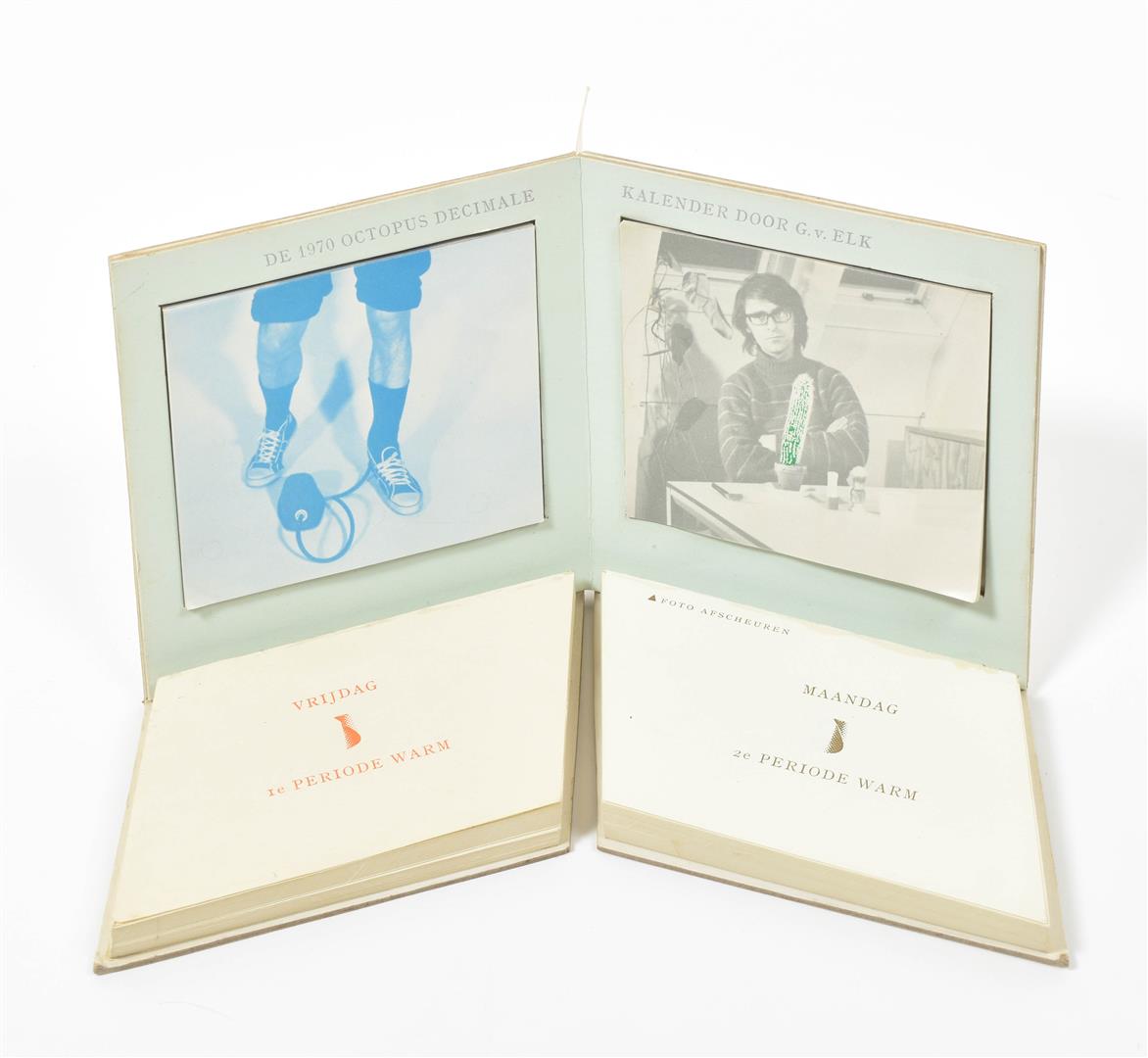 Beautiful rare artists' publication by renowned Dutch conceptual artist van Elk (1941-2014). The calendar states only weekdays and whether the period is warm or cold. The photographic plates feature sequences of stills from 'How van Elk inflates his left foot with his right one', 1969 and 'The well-shaven cactus', 1970. In good condition.