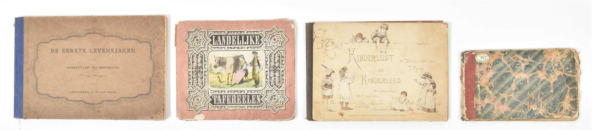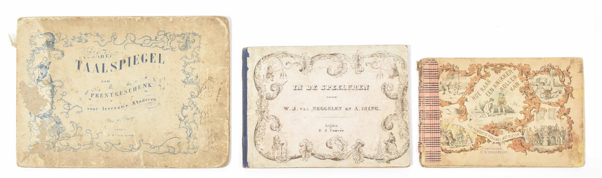 Leiden, D.J. Couvée, (1850). Full-p. col. plates. Former owner's inscription (dated 1907) upper pastedown. (2) Hoe raar een knikker rollen kan. Amst., G.W. Tielkemeijer, 1857. Full-p. col. plates. Ill. wr. Former owner's signature (dated 1858) upper pastedown. (3) De taalspiegel. Gouda, G.B. van Goor, (1859). W. col. plates. (4) De eerste levensjaren. Amst., C.M. van Gogh, (1851). Full-p. (col.) plates. -and 3 others.