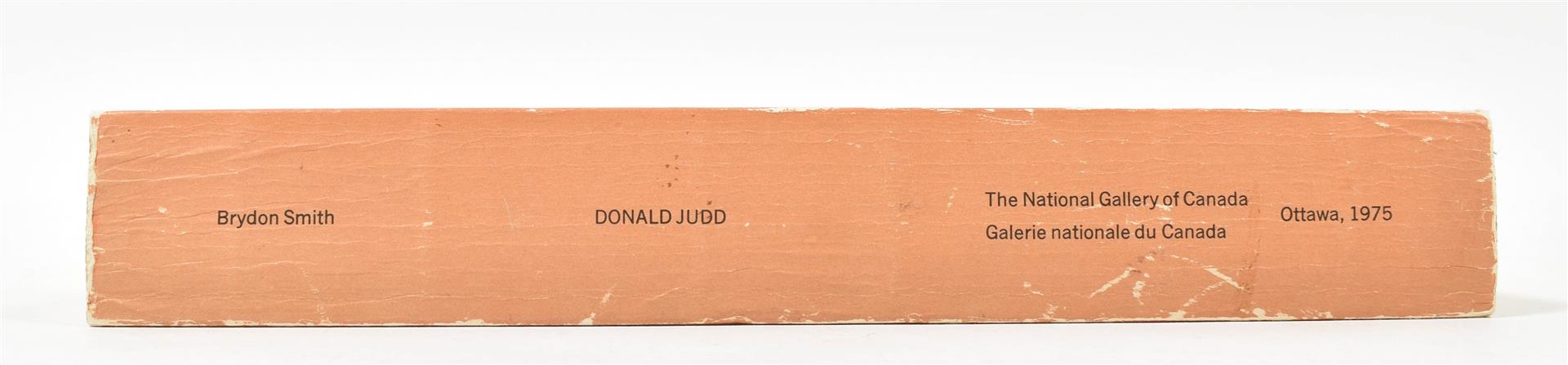 Ottawa, National Gallery of Canada, 1975. A catalogue for Judd's retrospective exhibition at the National Gallery of Canada, Ottawa, 24 May - 6 July 1975, edited by Dudley Del Balso, Brydon Smith and Roberta Smith. First edition. Softcover, orange cover with black lettering, 28 x 22.5 x 4.5 cm, 320 pp. Text in parallel English and French. Profusely illustrated in b/w.