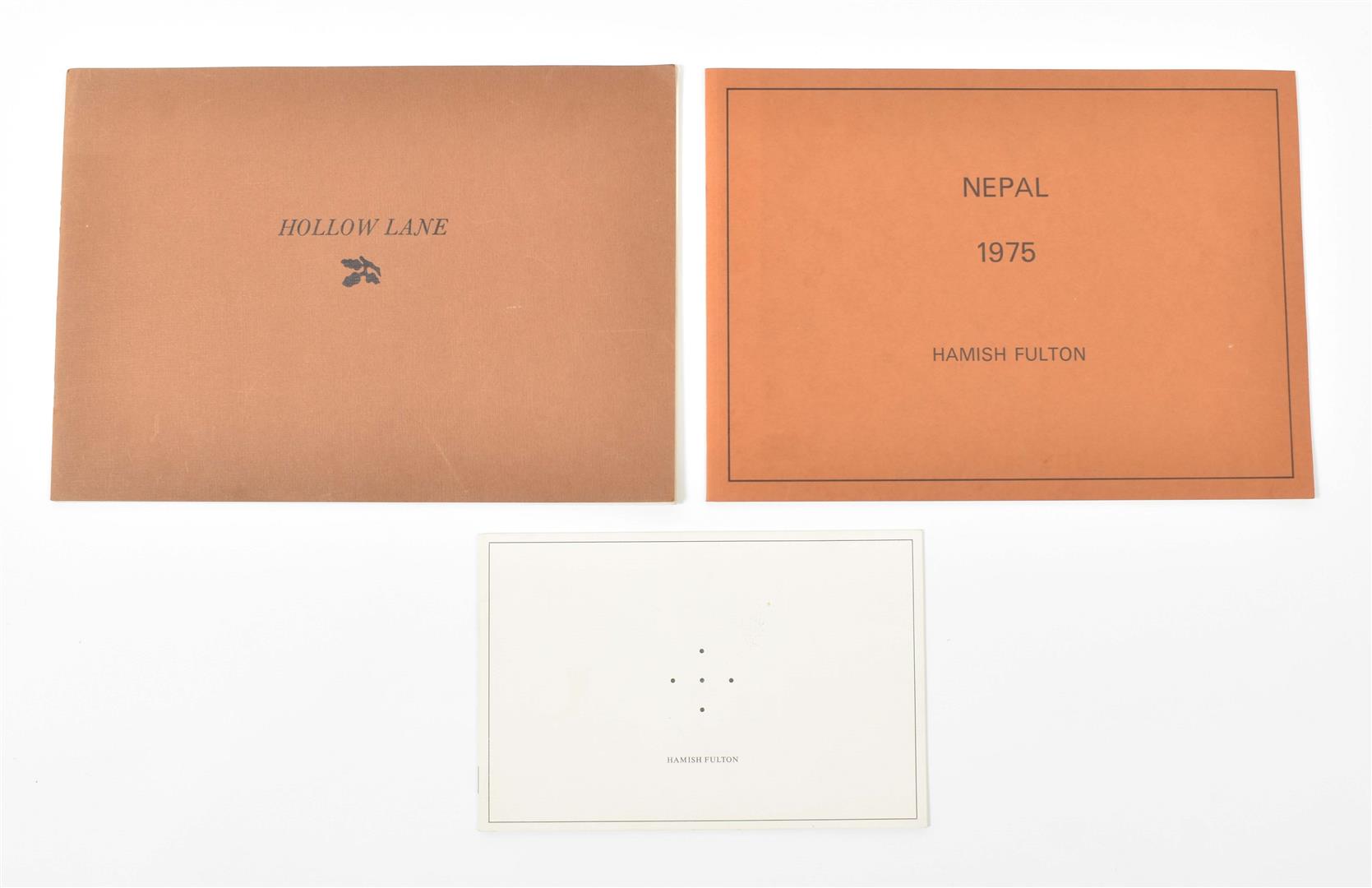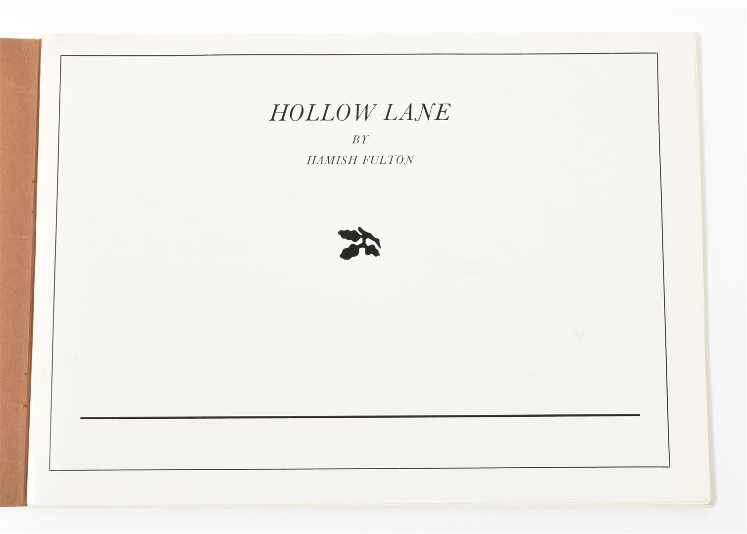 (1) Hollow Lane. London, Situation Publications, 1971. Card covers, 21 x 30 cm, 40 pp. Edition of 1000. Fulton's very first artists' book containing 20 full page b/w reproductions of photographs. Pages are mostly loose from the binding, light bumps to corners, else fine.