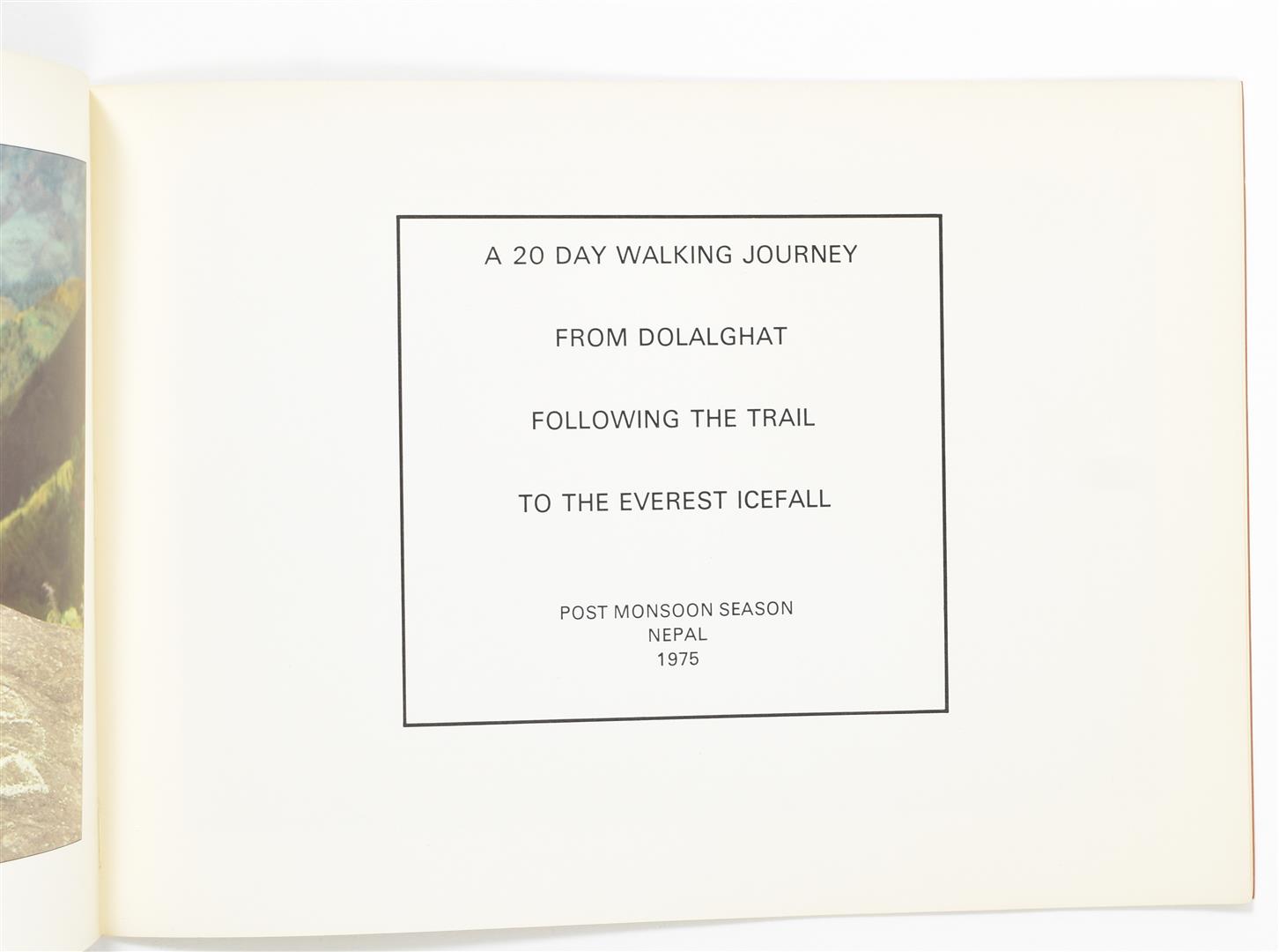 (2) Hamish Fulton: 10 Views of Brockmans Mount. A naturally formed hill near Hythe Kent, England. Amsterdam, Stedelijk Museum, 1973. Catalogue 542. Softcover, 14 x 21 cm, 22 pp. Light dent on rear cover, generally a fine clean copy. (2) Nepal, 1975. Eindhoven, van Abbemuseum, 1977. Softcover, 21 x 29 cm, 20 pp. Edition of 1000. Light sunning on cover, else very good. (total 3)