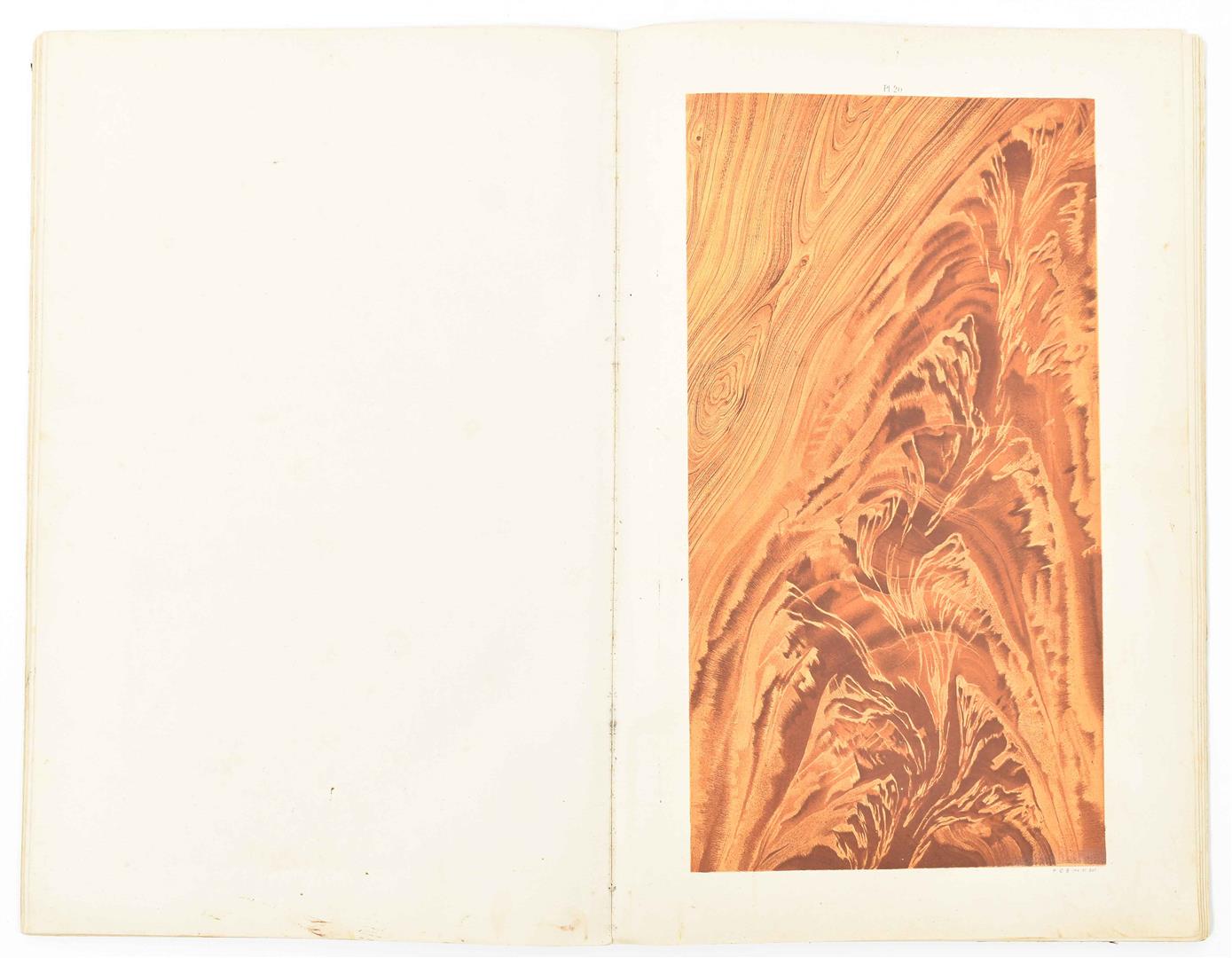 Leiden, S.W. Sijthoff, n.d. (ca. 1885). 36 (col.) lithogr. plates picturing marble and wood samples, brushes and other painters' tools. Sl. later (worn) half leather w. marbled paper boards. Folio.