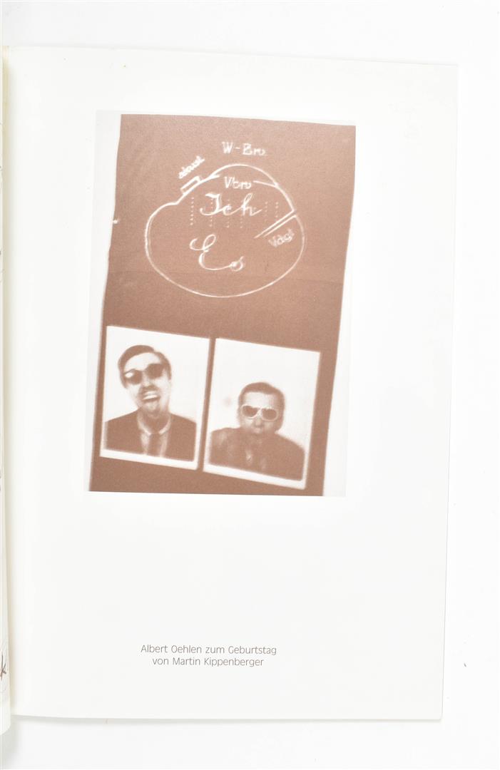 (2) Martin Kippenberger, Für Albert Oehlen! 17.9.54-17.9.84. Abschied vom Jugendbonus! Vom Einfachsten nach Hause. Cologne, Self-published, 1984. Softcover, 29.7 x 21 cm, with 48 full-page brown on white illustrations. Edition of 500 copies, published as a birthday present for Oehlen. Both copies with light shelf wear on exterior, generally in good condition. (total 2)