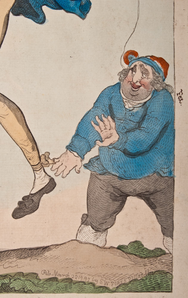Richard Newton (1777-1798), S.W. Fores, London, 1797. Hand-coloured etching depicting MPs Richard Sheridan and Charles Fox hanging Prime Minister William Pitt (the Younger) with words. 34,9 x 24 cm.