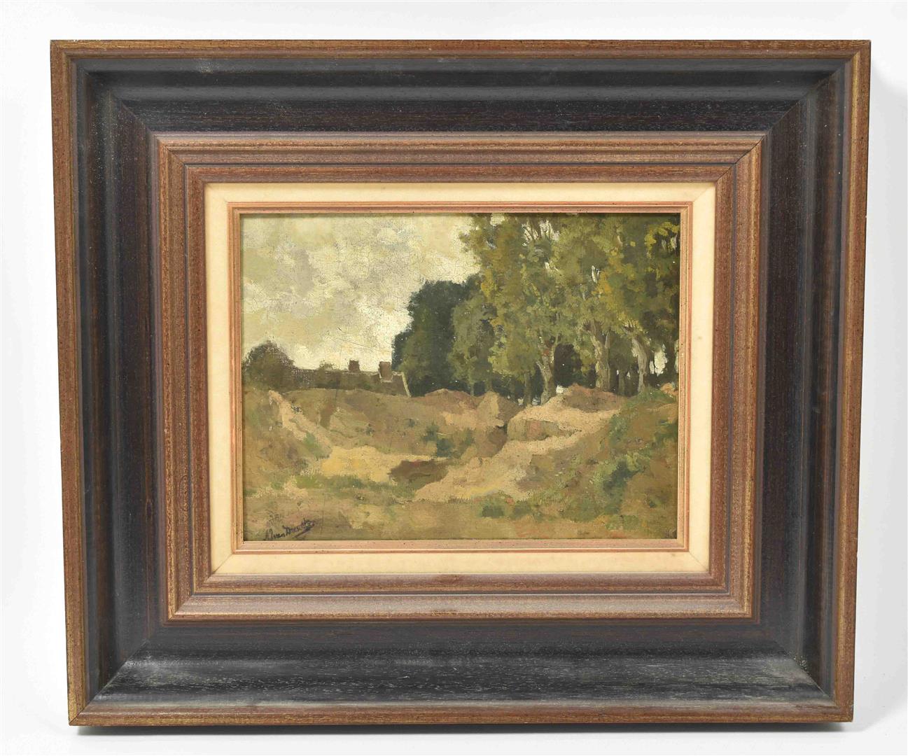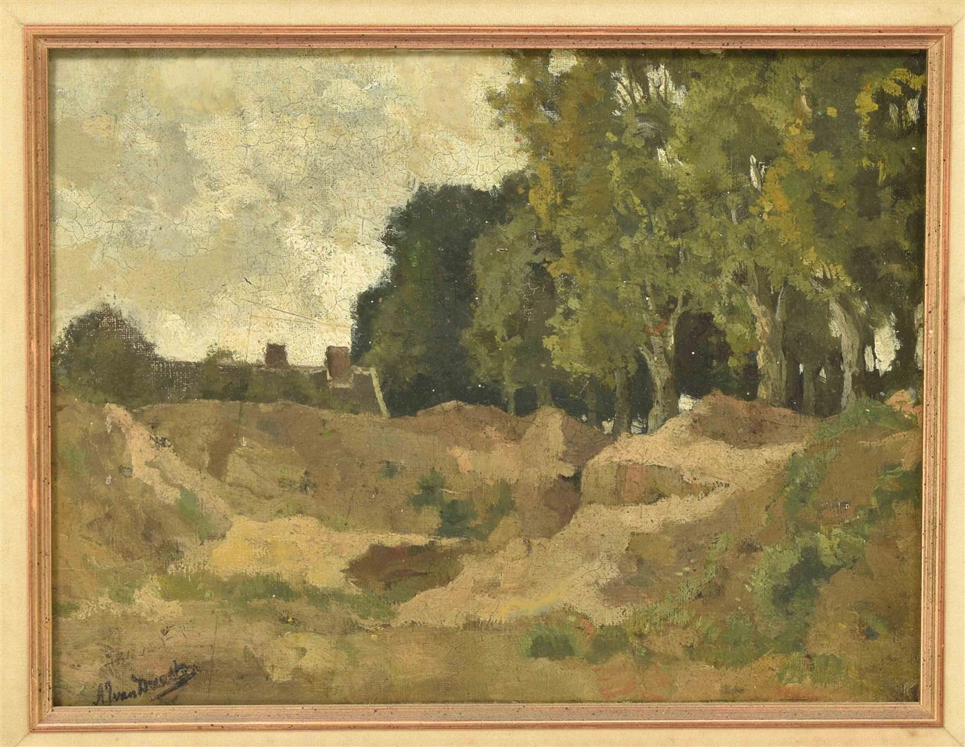 Early 20th cent. Signed bottom left. Marouflé mounted on wood. 25 x 25 cm. In wooden frame.