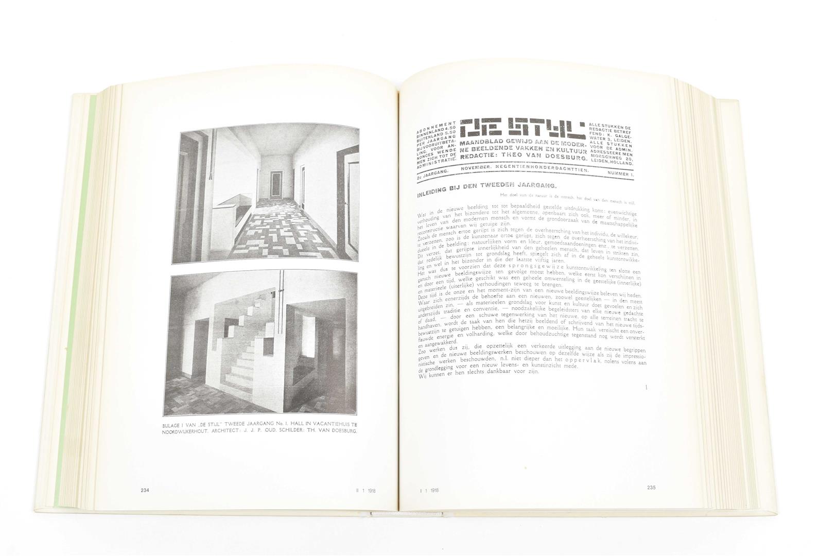 (1) De Stijl 1 & 2. Complete Reprint 1968. Amst. etc., Athenaeum etc. Both hc. Covers sl. worn. (2) Oud, J.J.P. Mein Weg in 'De Stijl'. The Hague etc., Nijgh en van Ditmar, (1958). Hc. (3) Piet Mondrian Life and Work. Amst., Contact, n.d. Hc w. (sl. torn) dust-j. Added: 4 var. works, incl. 2 on El Lissitzky and 1 on Le Corbusier.