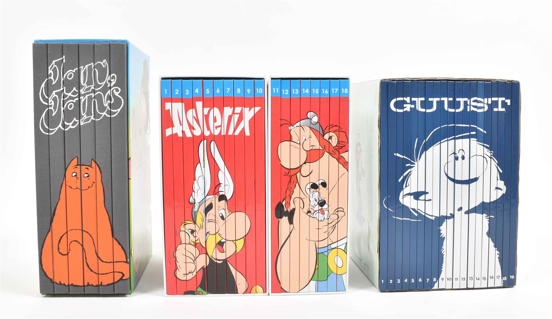 (1) Alles van Guust. Dupuis, 2016. Nos. 1-19. Hc in slipcase. (2) Asterix. Hachette, 2017. Vols. 1-18. Hc in slipcase. (3) Jan, Jans en de kinderen. Lekturama, 1992. Vols. 1-6. Hc in hcl. in slipcase.