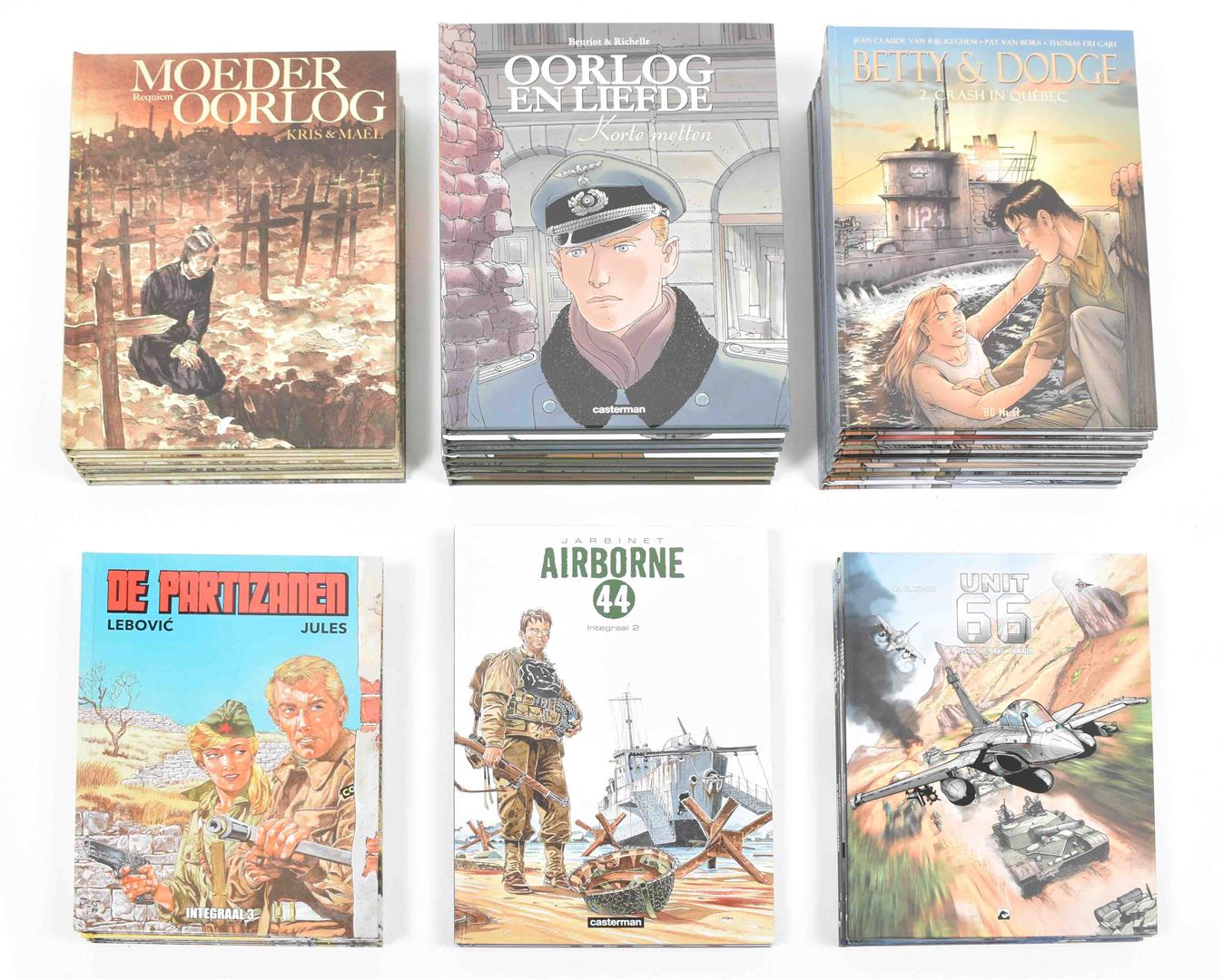 (1) Partizanen Integraal. Prestige, 2015. Vols. 1-3. Hc. (2) Unit 66. Dark Dragon, 2019. Nos. 1-4. Hc. (3) Moeder Oorlog. Daedalus, 2010-2016. Nos. 1-4 + Kronieken. Hc. -and 20 others, incl. Ooorlog & Liefde, Betty & Dodge and Airborne 44, all hc.