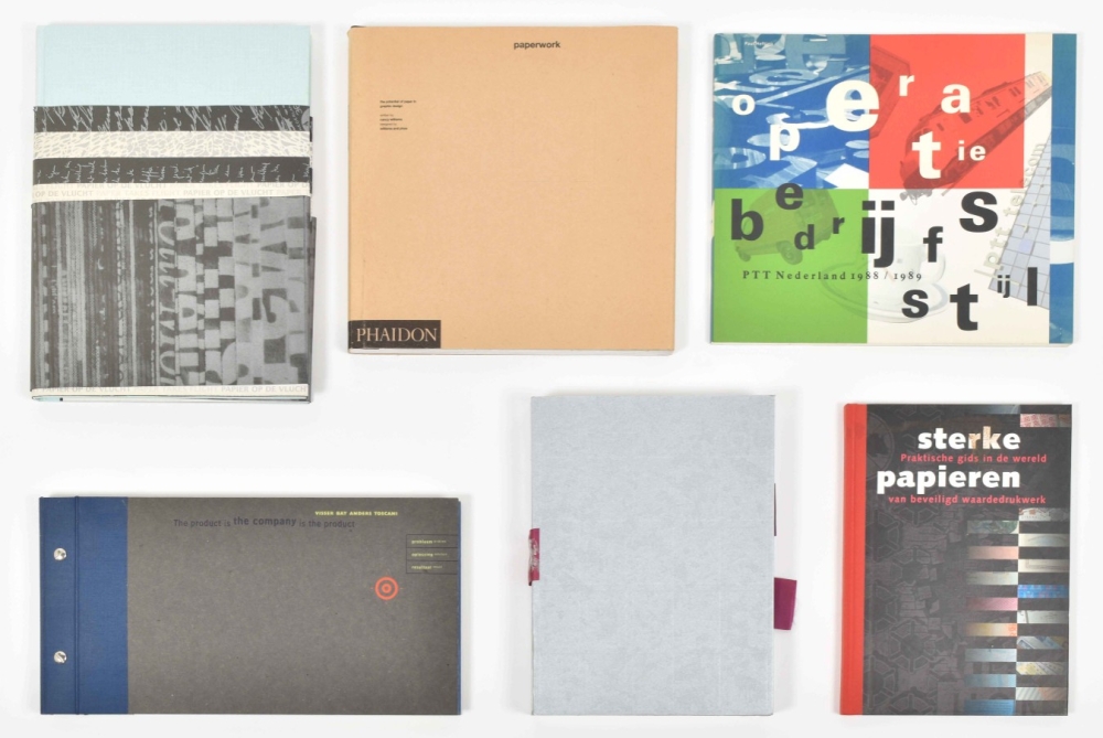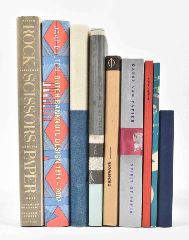(1) Dutch Banknote Design 1814-2002. A Compendium. Amst., De Nederlandsche Bank, 1999. Folio. Hc w. ill. dust-j. (2) Papier en water/ Paper and Water. Rijswijk, Gentenaar & Torley, 2000. Cl. (3) Rock Scissors Paper. Design Influence Concept Image. Tokyo, Graphic-Sha, 1991. Hc w. dust-j. -and 6 others.