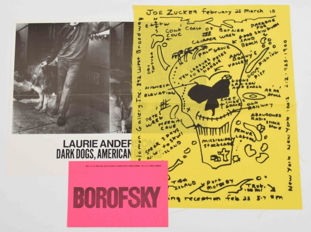 Fourteen announcements by New York gallery Holly Solomon. Includes small poster 'Dark Dogs, American Dream', 1980 by Laurie Anderson. Originally folded hence the modest crease lines, else very good.