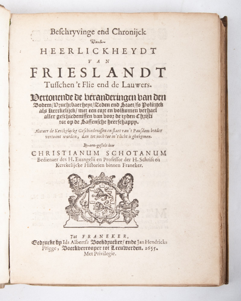 tusschen 't Flie end de Lauwers. Vertonende de veranderingen van den Bodem (...) Christianum Schotanum, Franeker, Ids Albertsz ende Jan Hendricks Prigge, Leeuwerden, 1655.