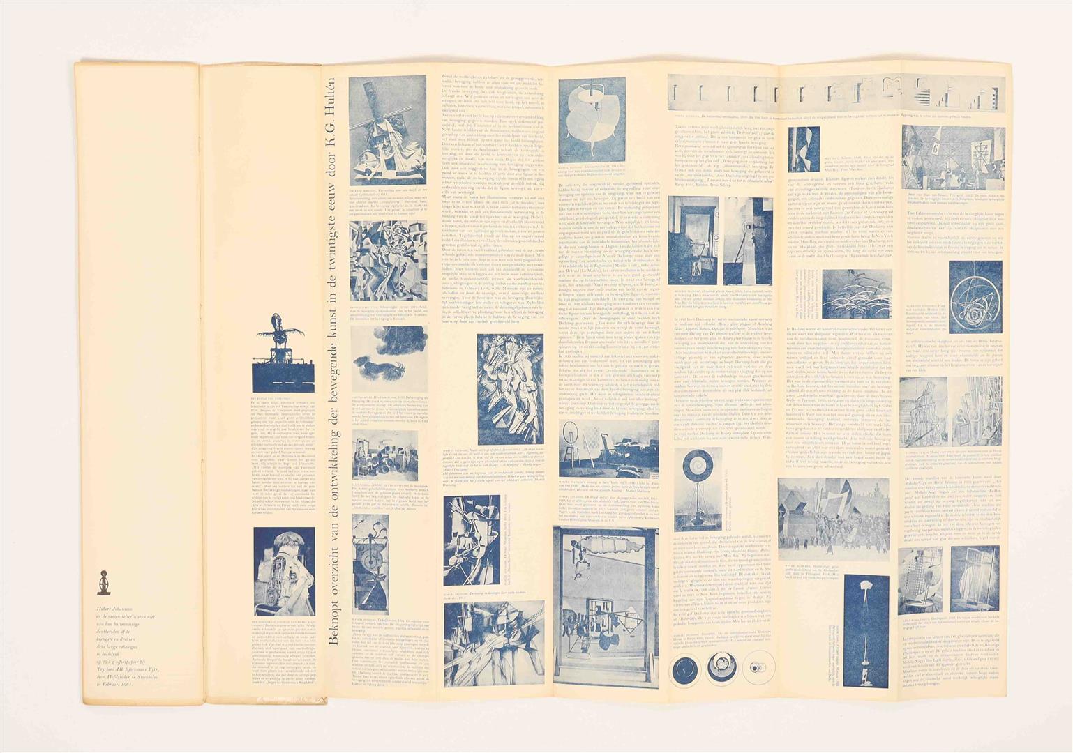 Amsterdam, Stedelijk Museum, 1961. Tall pictorial wrappers, 58 x 11 cm, 32 pp., printed in black and blue, with tipped-in leporello. Catalogue published by the Stedelijk Museum in collaboration with the Moderna Museet Stockholm, edited by K.G. Hultén, Willem Sandberg, Daniel Spoerri and Jean Tinguely.