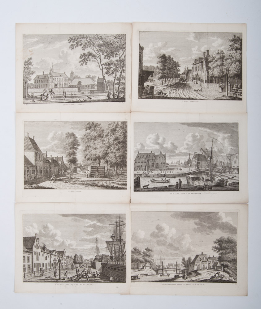 Copperengravings 20x, mostly 18th-cy of Frisian cities and villages in var. sizes, sometimes 2 per page, with views and buildings by var. publishers and engravers (20 in total)