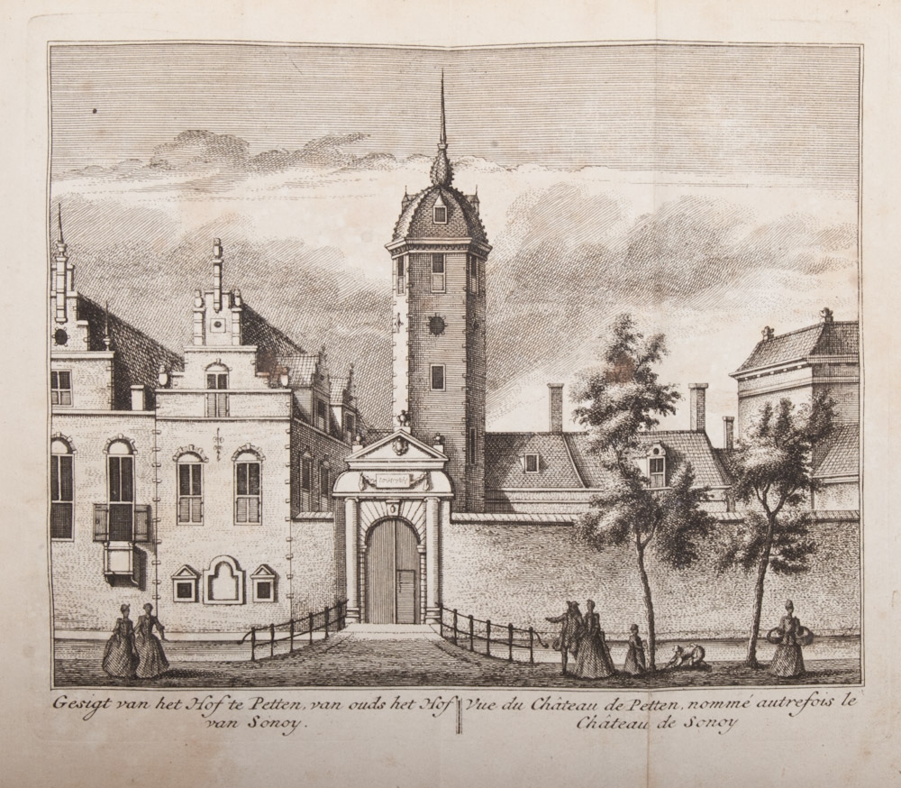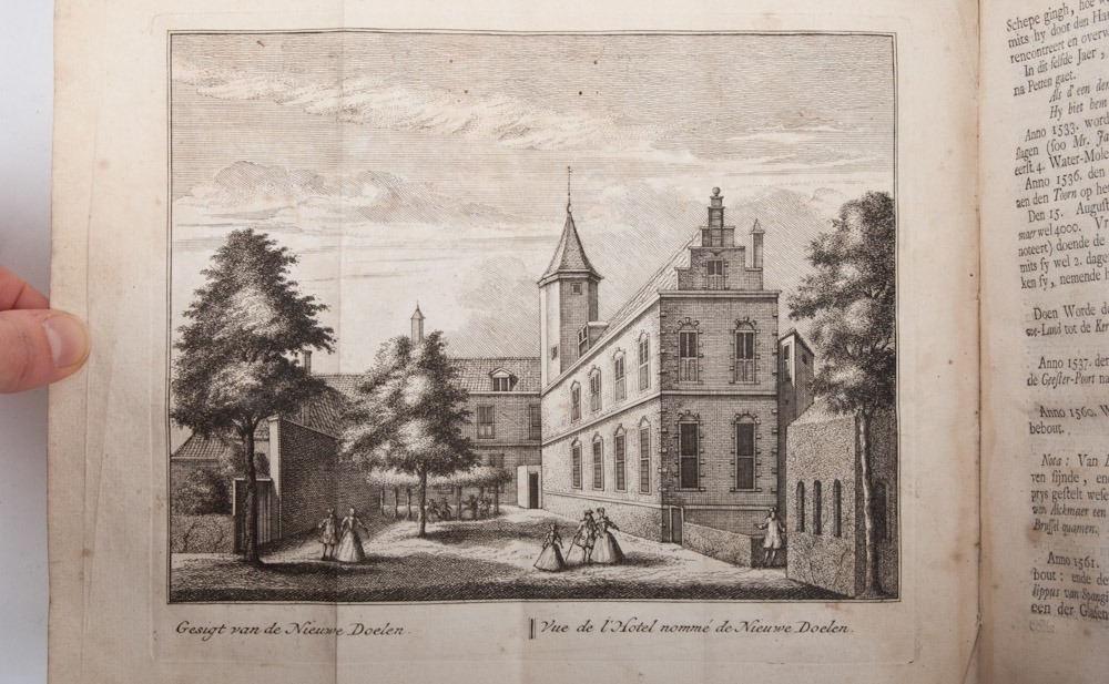 Sm. 4to., vellum, new endpapers, title page in red and black with ill. vignette, (4),190,(15) pp. with title print and 21 prints in copperengraving and map of Schermer. Loose in binding; map of Alkmaar is missing; sloppy copy.