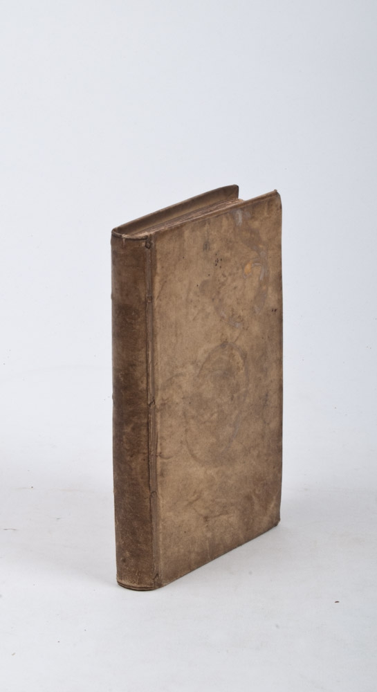 Sm. 8vo., vellum, loose in binding, ill. frontispiece and 25 prints in copperengraving. A large part of the text with brown stains. Bound together with (in the back): Den getrouwen Leidtsman in Romen, and: Pronk-altaar der Schilder-konst (1697). Untidy copy. Rare.