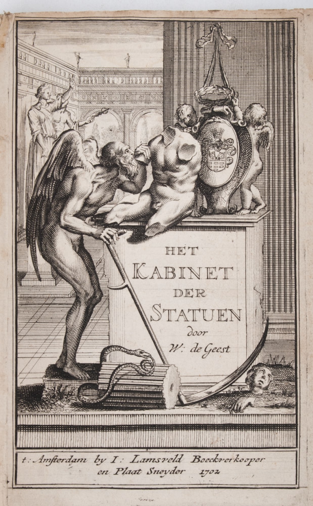 Het kabinet der statuen, ons van d'aaloudheid nagelaten, welkers makers, navolgers, geboorten, de plaatzen waar zy staan, vertoond worden, en met alle hare afbeeldingen door Jan Lamsvelt verciert. Wibrandus de Geest, Amsterdam. Jan Lamsvelt, 1702