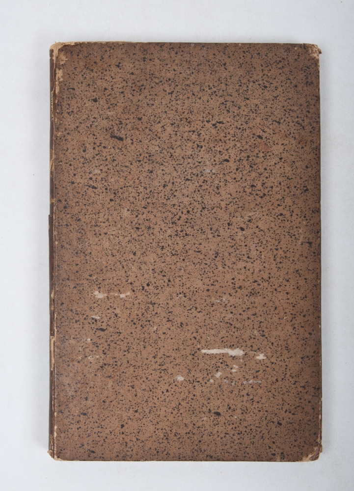 Sm. 8vo., hard cardboard binding, front and back endpapers removed, title in red and black with vignette, VIII,46,(2),54 pp., a copperplate, folding and hand-coloured. Rare