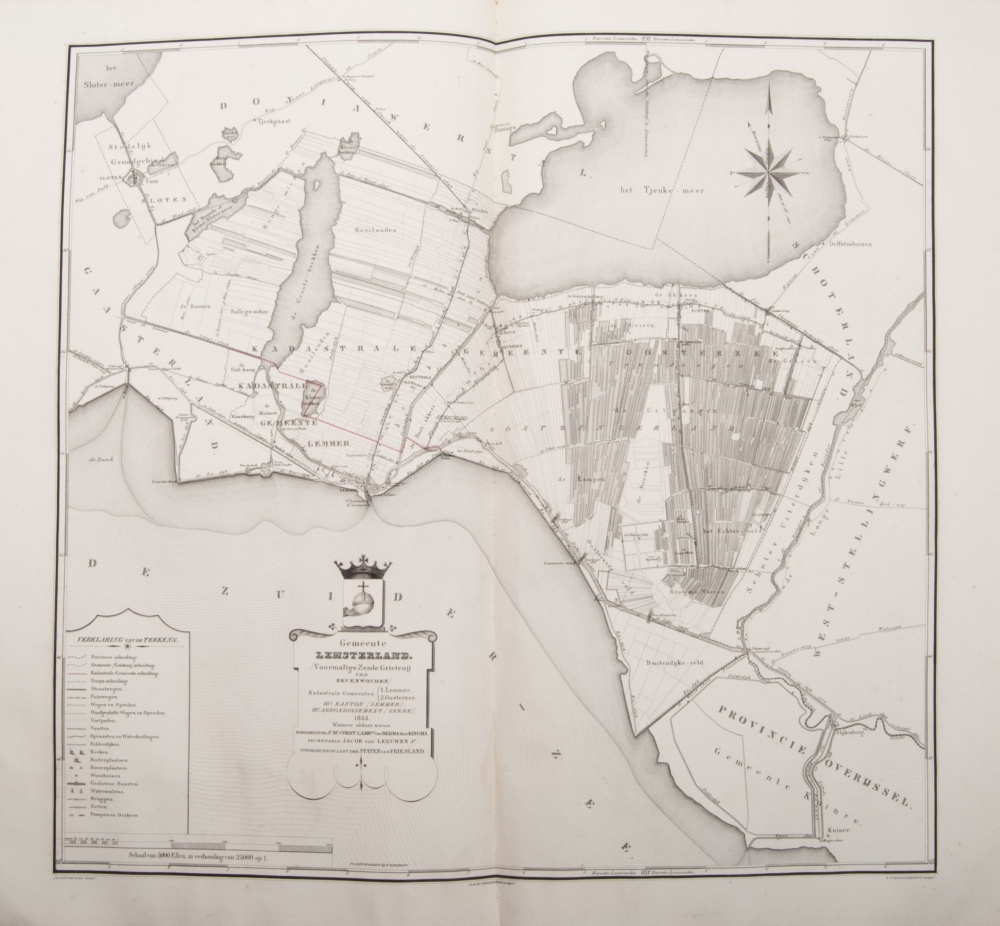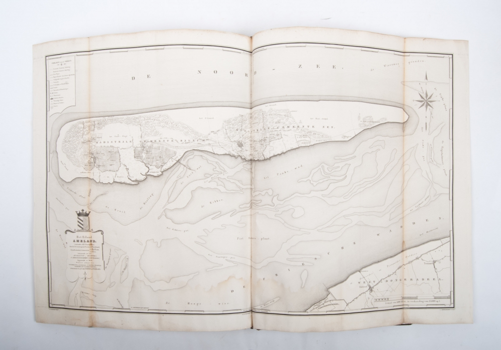 Elephant folio, new binding and endpapers with alphabetical index, title page with vignette, 3 pp. and 32 maps in margin colouring; most folding and engraved by D. & H. Veelwaard after J.W. Witteveen; all maps with municipal coat of arms and compass rose, var. leaves restored, maps with water stains bottom, apart from that good. Monumental work and highly detailed.