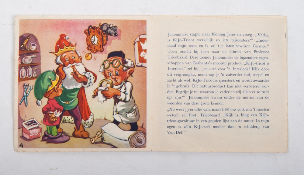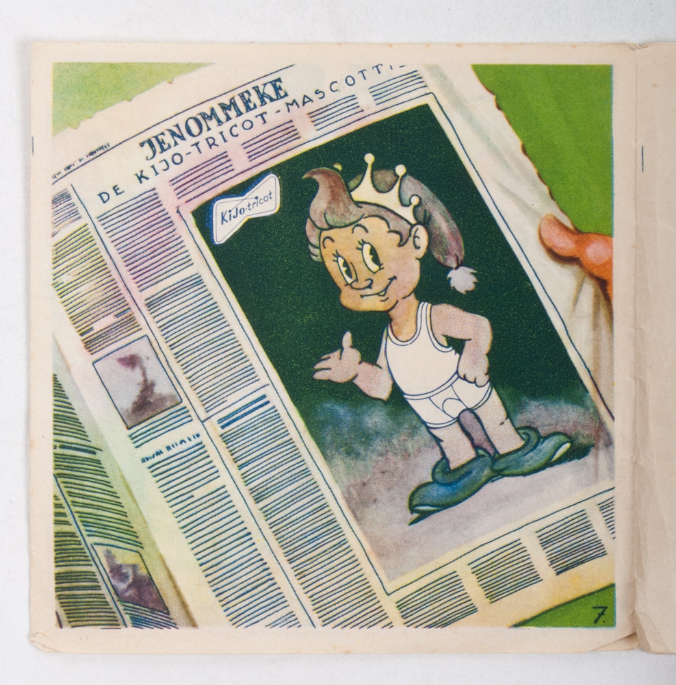 Advertisement publication KiJo-Tricot terrycloth. De belevenissen van Jenommeke van Brabanta. The KiJo-tricot Mascot. No. 2. Ca. 1955. Folding strip with 7 panels, with text to the side.