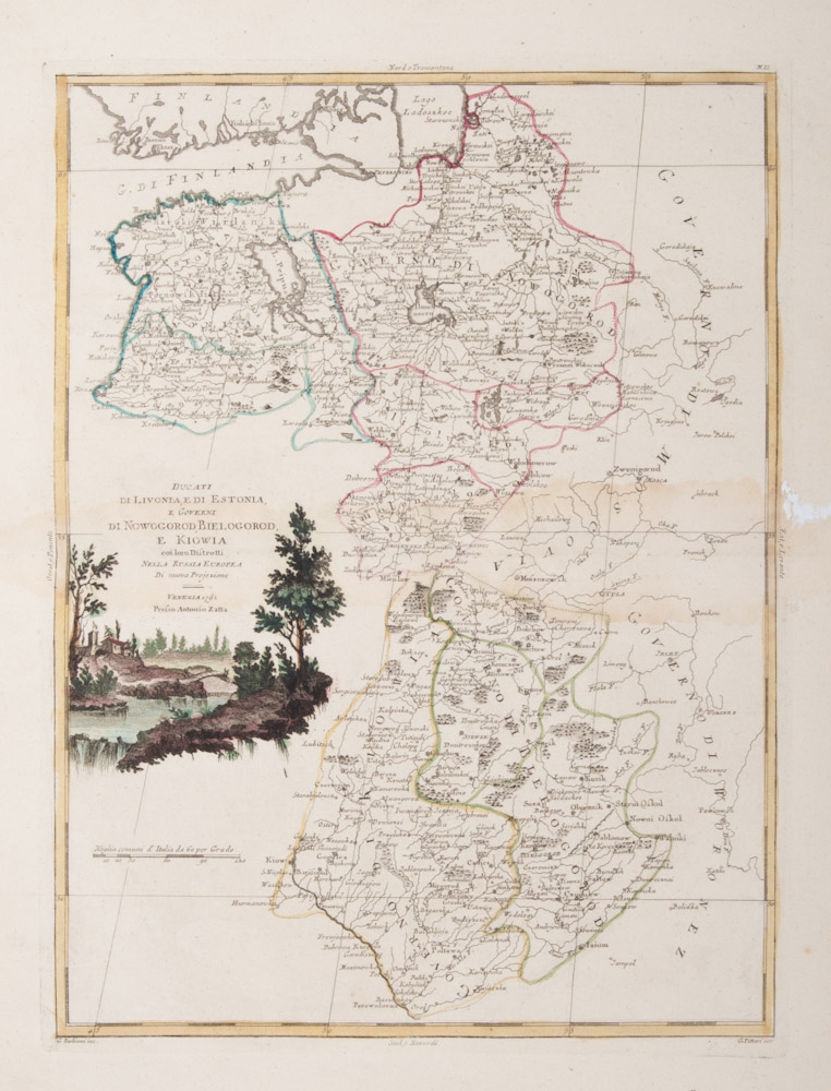 Two engraved maps by G. Pitteri and G.Zuliani, borders and cartouches hand-coloured, published by Antonio Zatta in Venice, 1792/1782, numbered "II" and respectively "III" in the print, top right corner, both ca. 42x32 cm.