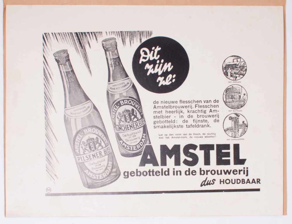 With: Advert-campaign Amstelbier designed by AMA-STUDIO by N.V. DE LA MAR Azn. Amsterdam etc., n.d. (ca. 1950), 2 volumes, with 5 and 10 reproductions of adverts respectively, original uniform cover (not intended for publication, no copies in Picarta).
