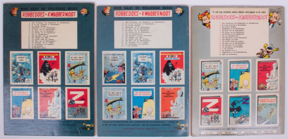 Z van Zwendel, vol. 15, Dupuis, 1961. 1st ed., fine copy + De Schaduw van Z, vol. 16, Dupuis, 1962, 1st ed., good copy + QRN op Bretzelburg, Dupuis, 1966, 1st ed., fine copy.