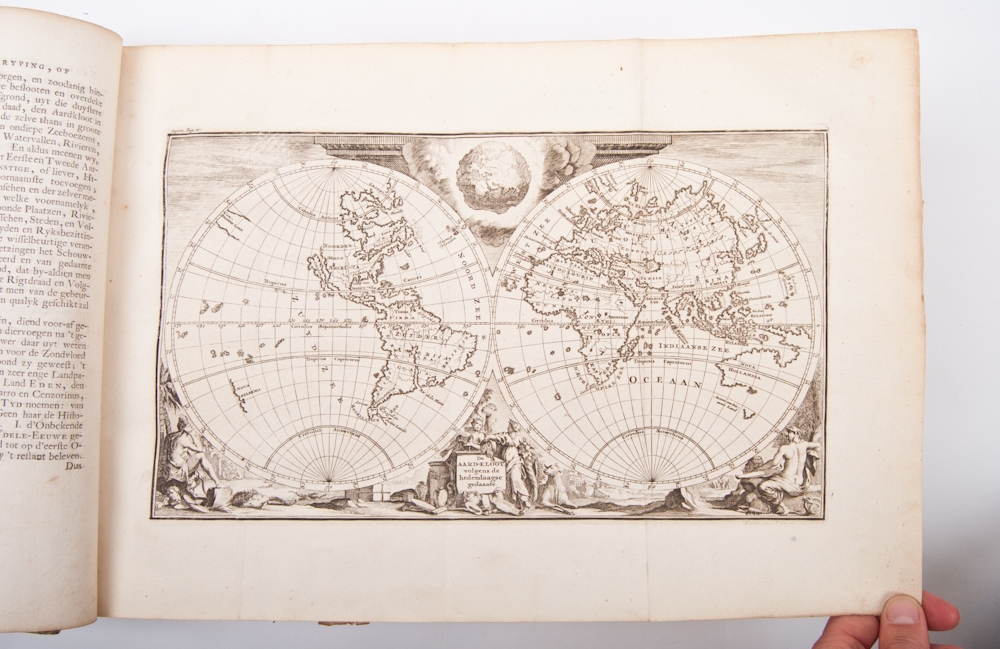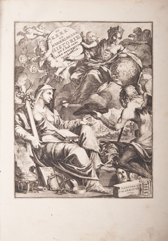 Uyt d'Aal-Ouwde Aardbeschryving, en Uytgezogte Gedenk-Penningen opgehelderd... Te Leyden by Johannes Van Abkoude, 1730. 4to. parchment, engr. frontispice, (38),746,(92) p. Complete with portrait of the author (folding), 4 folding maps, 1 genealogical table, 16 full-p. engravings and countless engravings in the text. Good copy.