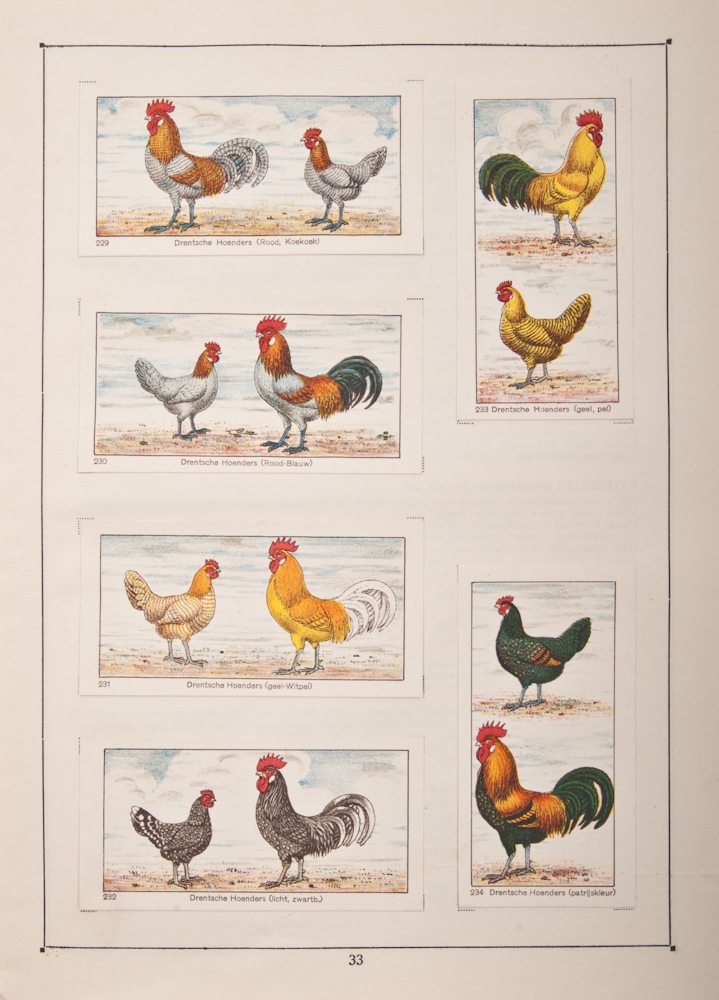 Onze vogels en kippen: 3rd series 1933, pictures complete from 141-280. + Onze vogels: 2nd series 1929, pictures complete from 71-140. Both in good condition.