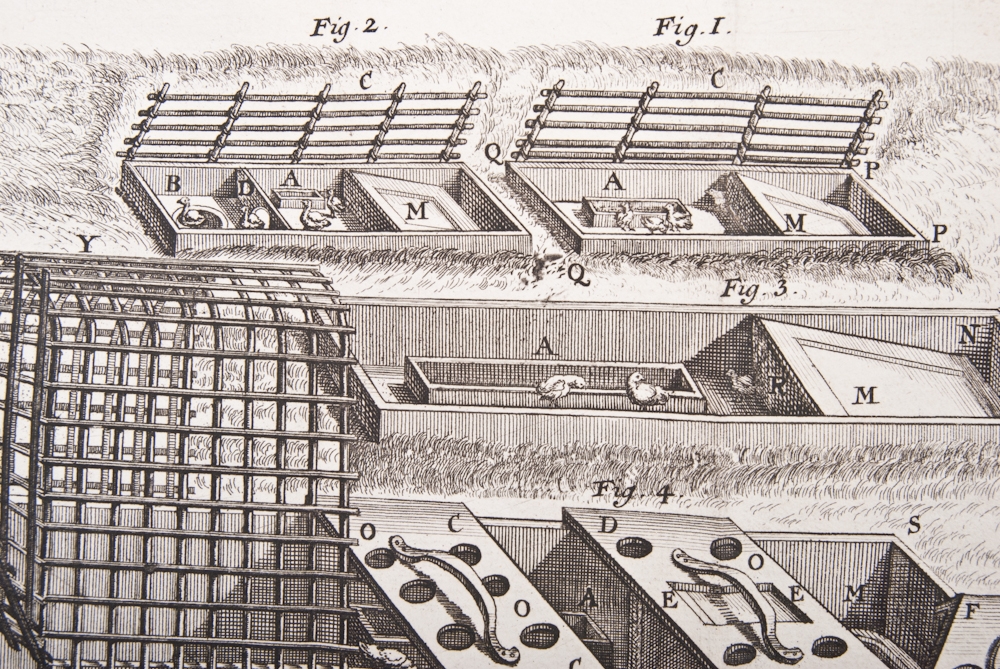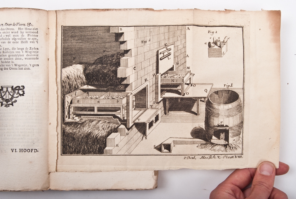 De Reaumur, 's Gravenhage, 1751, 2 vols. XVI, 384, IV, 408 p. 8vo. Complete with 15 folding copper engravings. In contemporary publisher's paper binding. Good set.